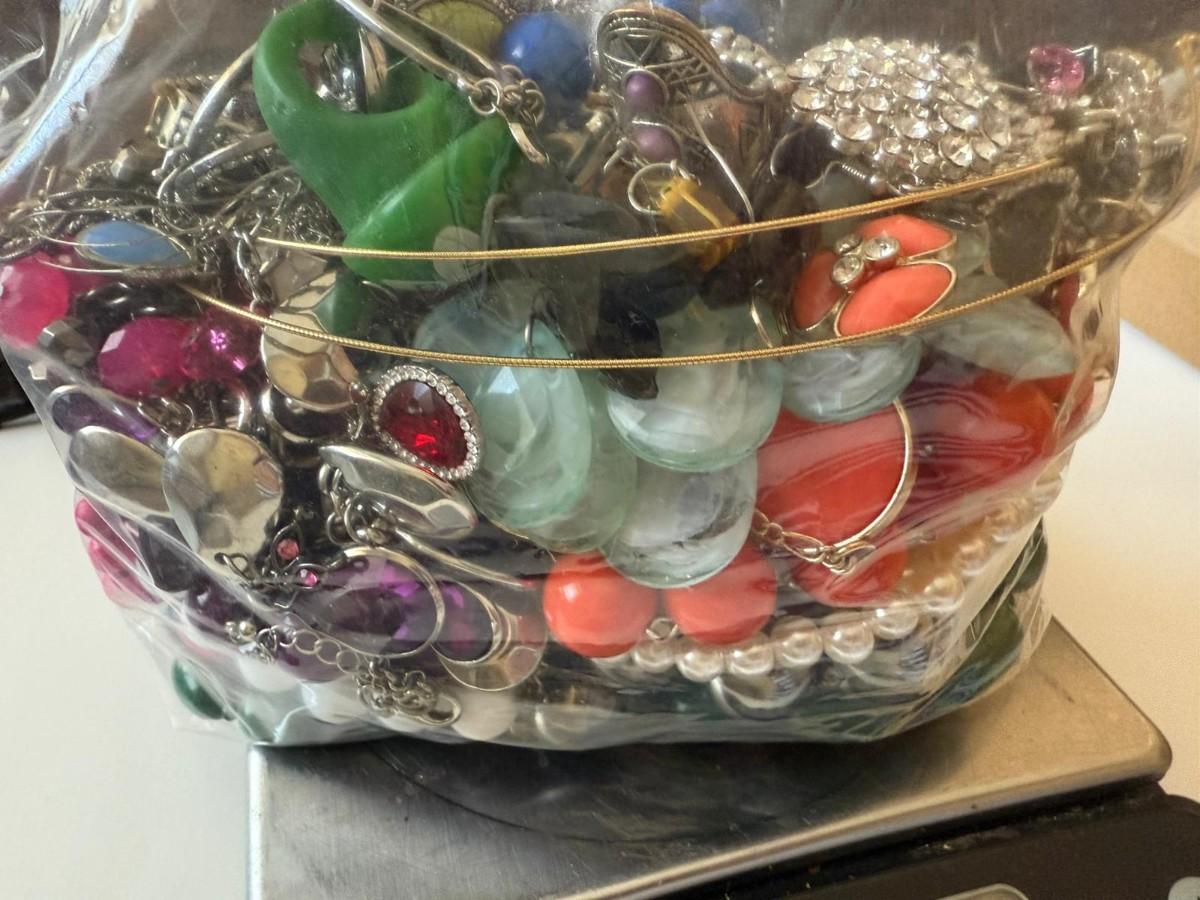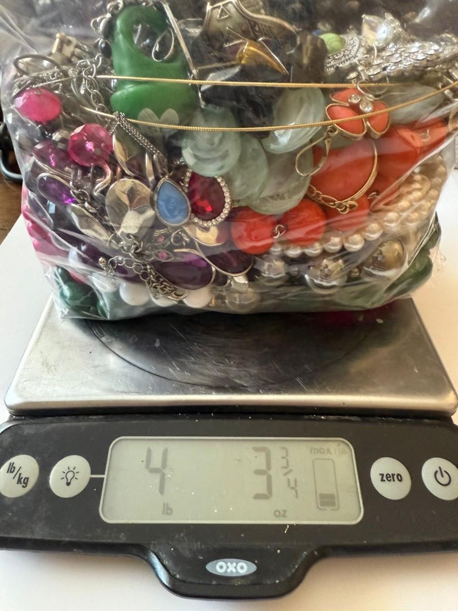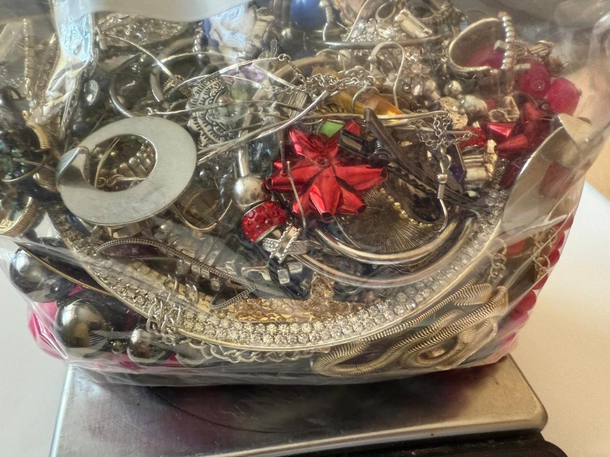 Bag of costume jewelry (rings, bracelets, necklaces, earrings) weighting 4lb 3 3/4oz