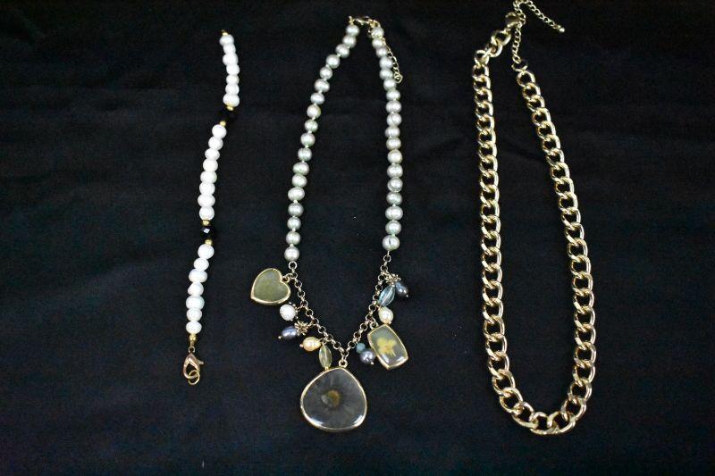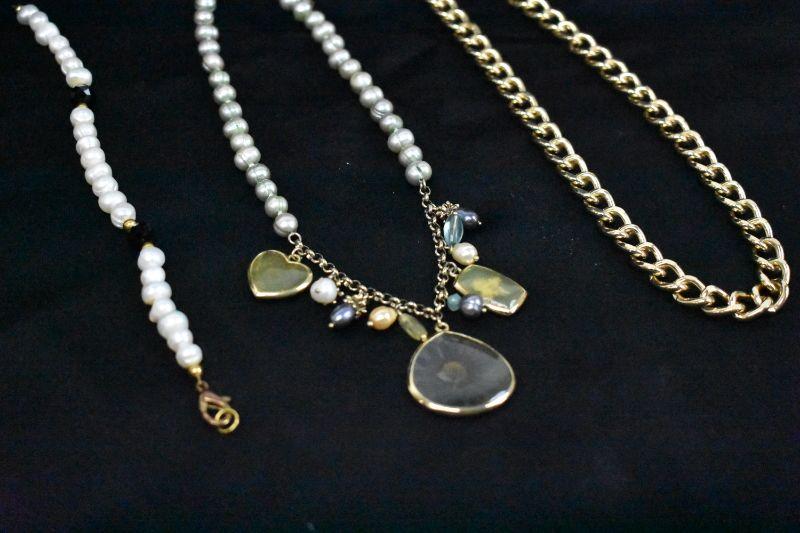 Costume Jewelry: 2 Necklaces, 1 Faux Pearl Bracelet