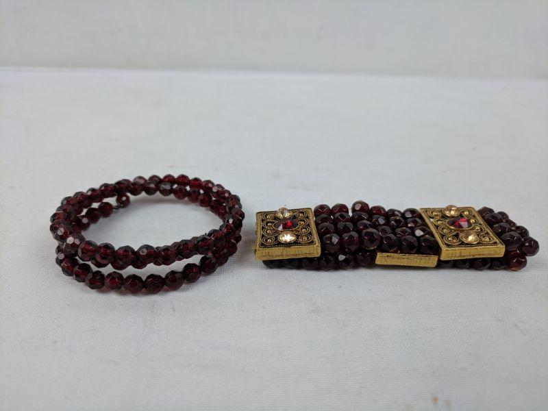 Costume Jewelry: 2 Red/Gold Tone Stretch Bracelets