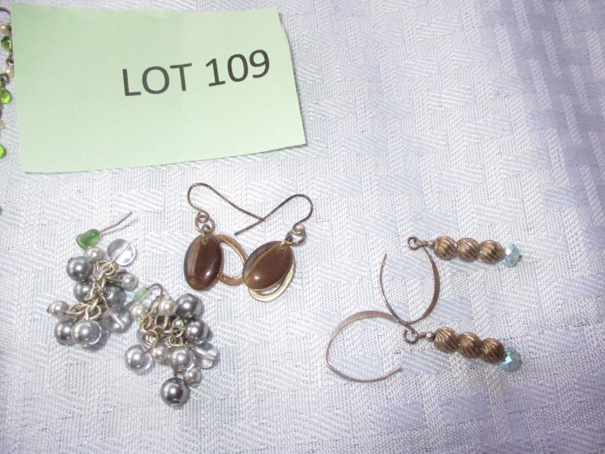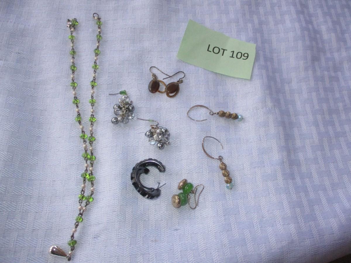 5 pierced earrings. 1 Green beaded necklace