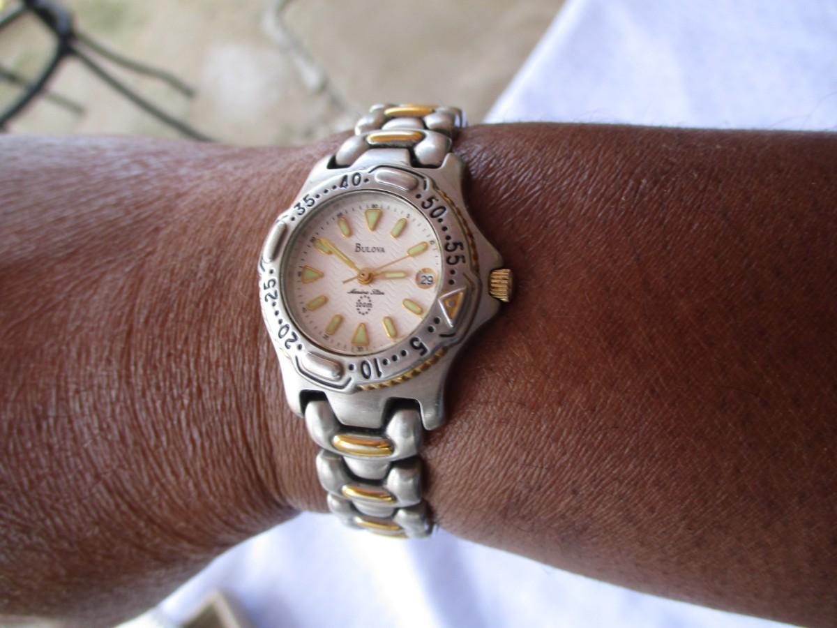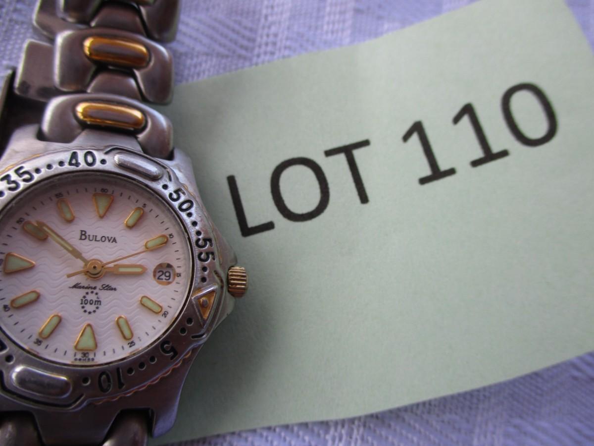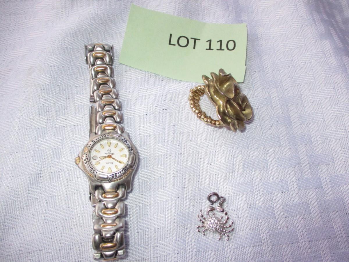 Bulova ladies watch- can't guarantee it works. Gold tone ring with rubber band. Small crab pendant