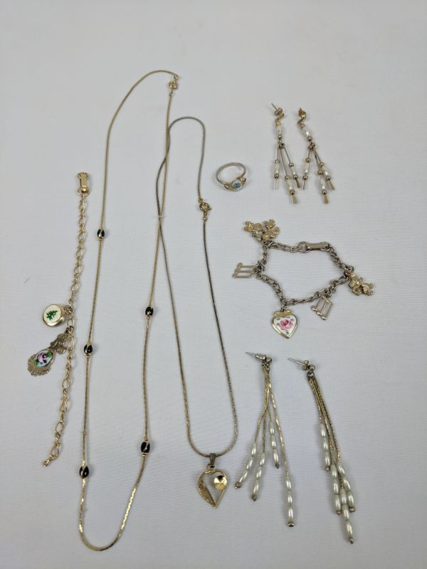 Costume Jewelry, 7 Qty: Earrings, Charm Bracelets, Necklaces, Ring