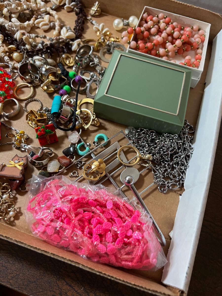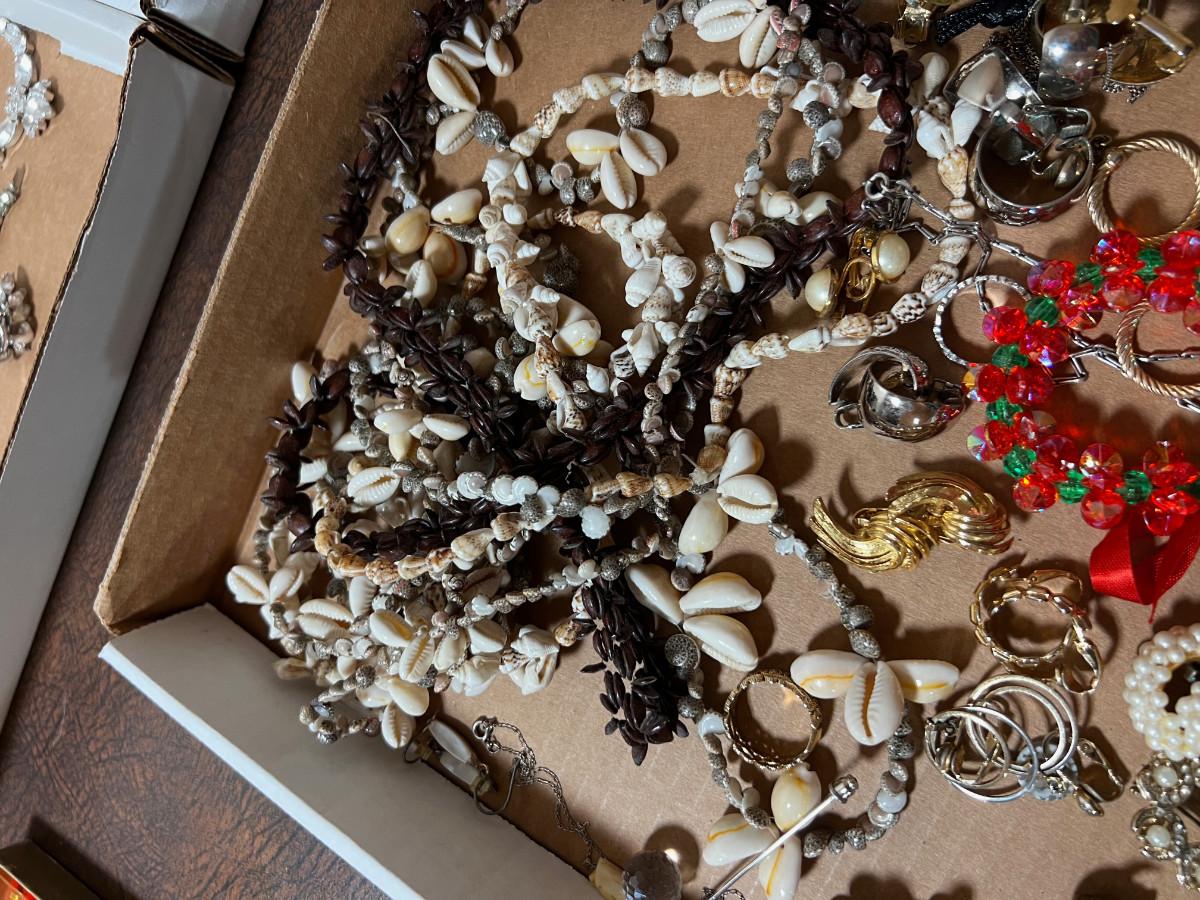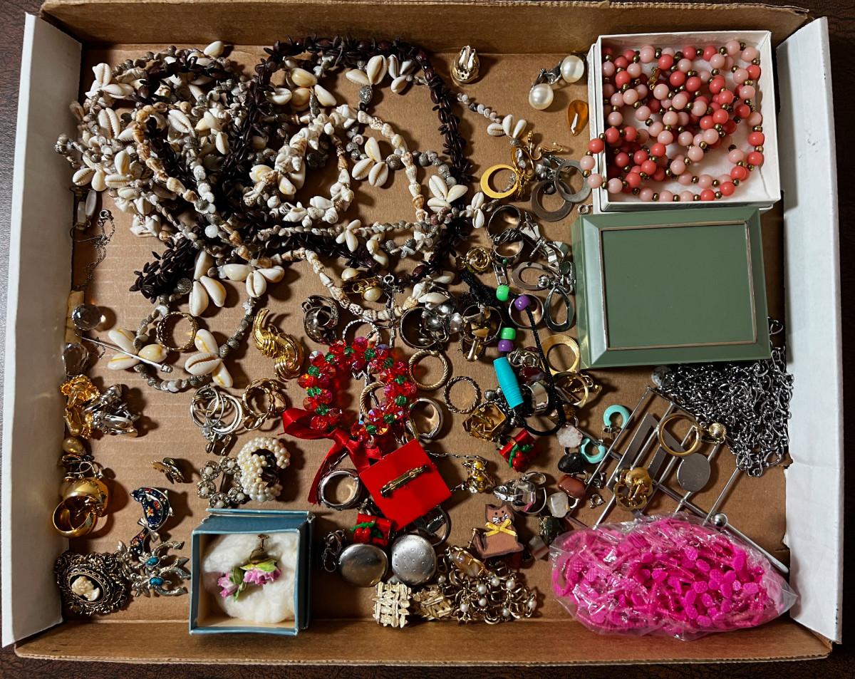 Costume Jewelry; Beads, Shells, Apple Seeds and earrings.