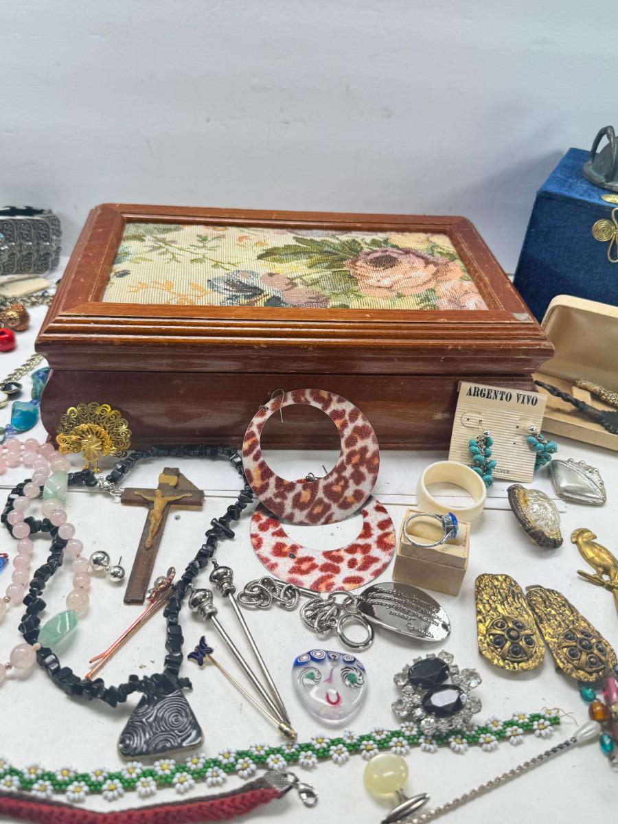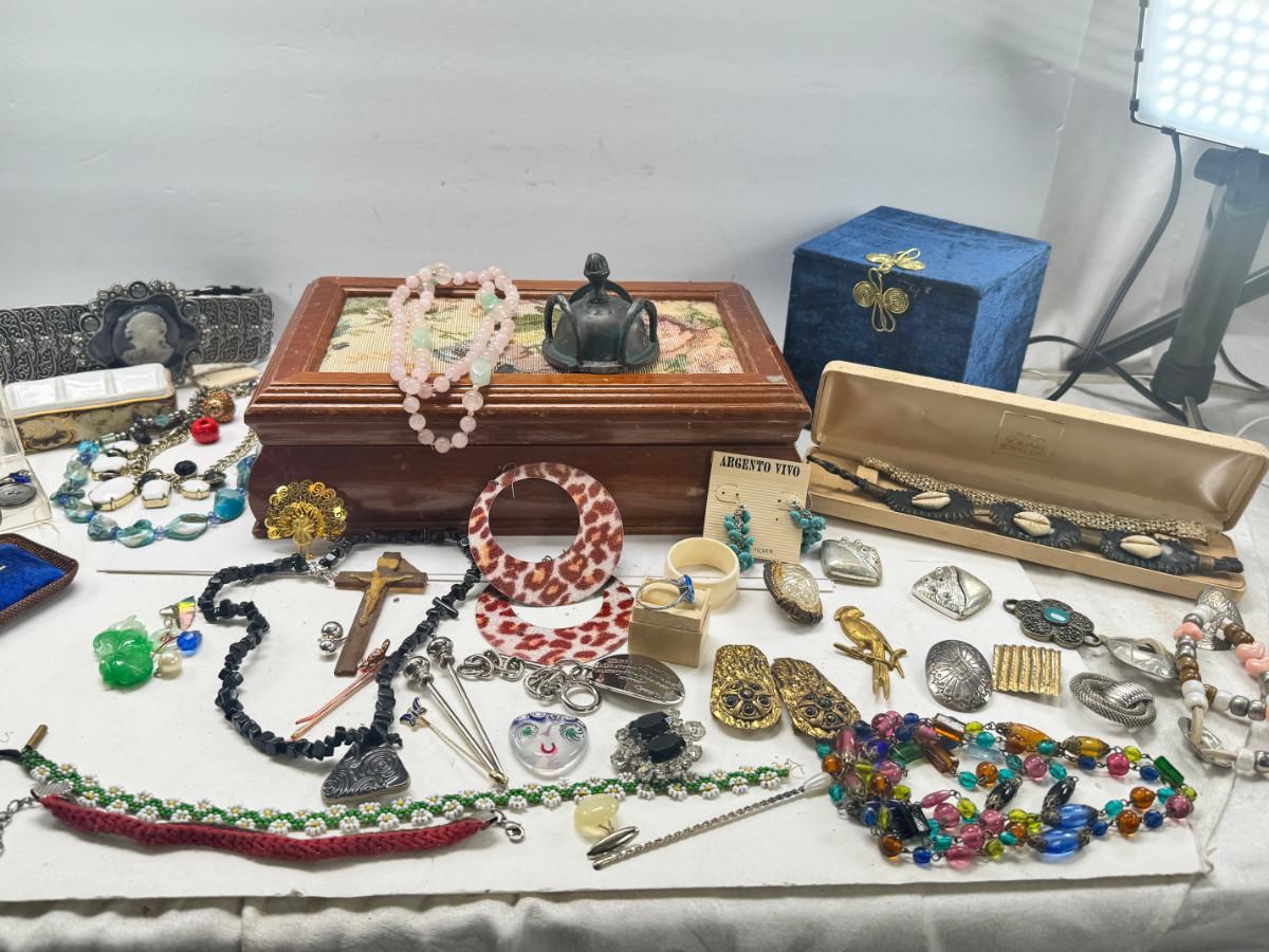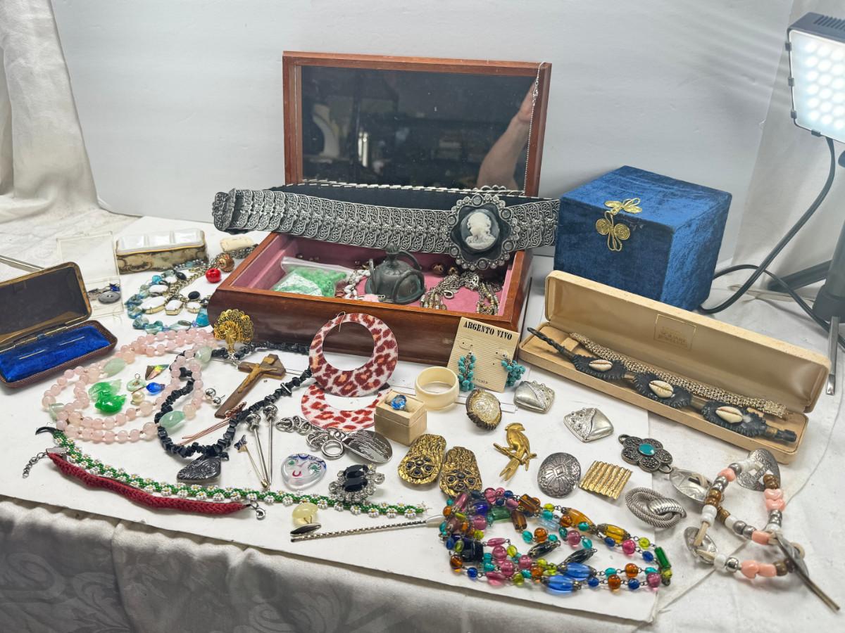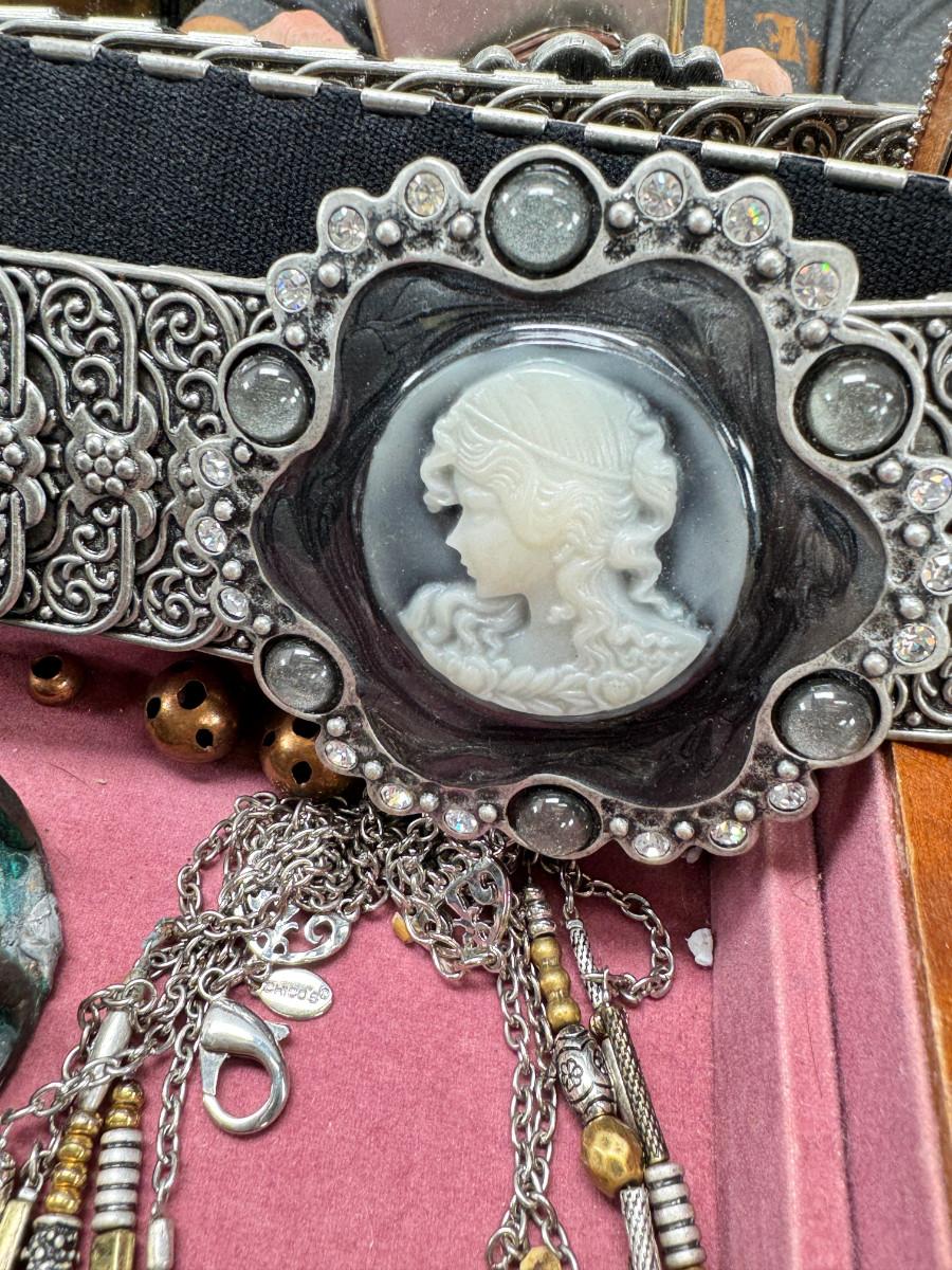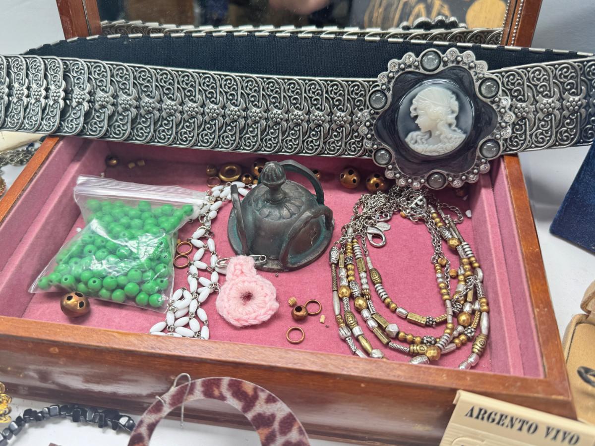 Costume jewelry, cameo belt and jewelry boxes
