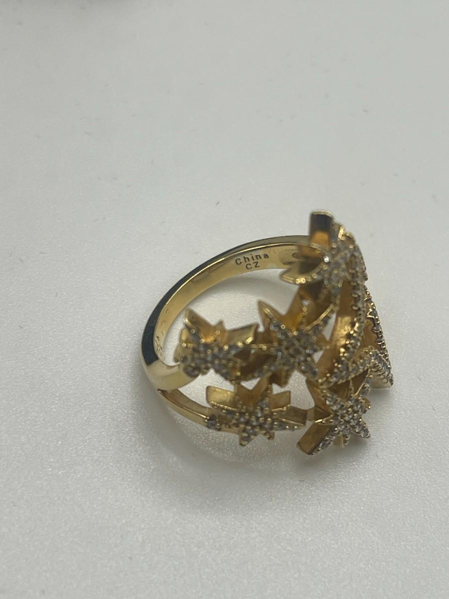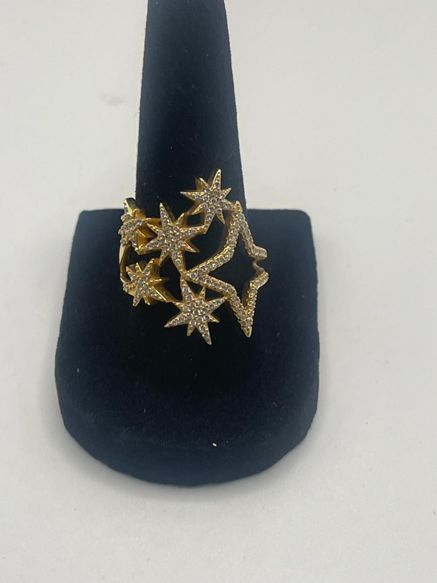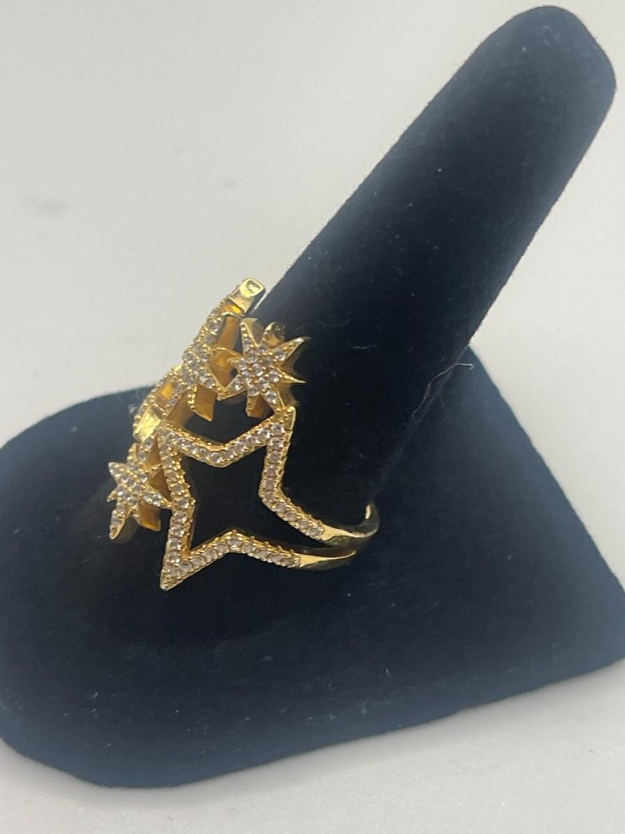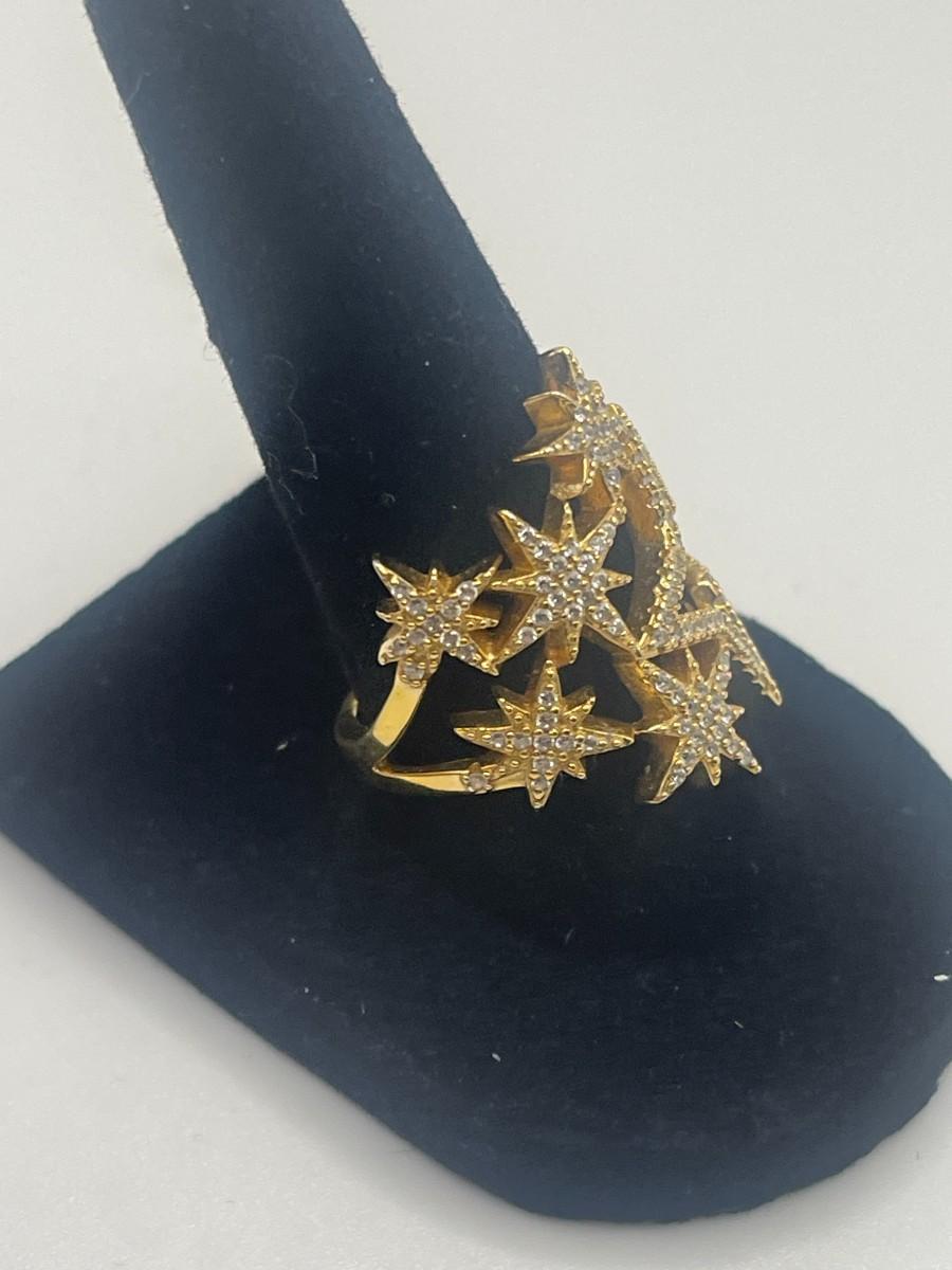 Costume Jewelry CZ Star Ring Set in Gold Finish Sterling Silver