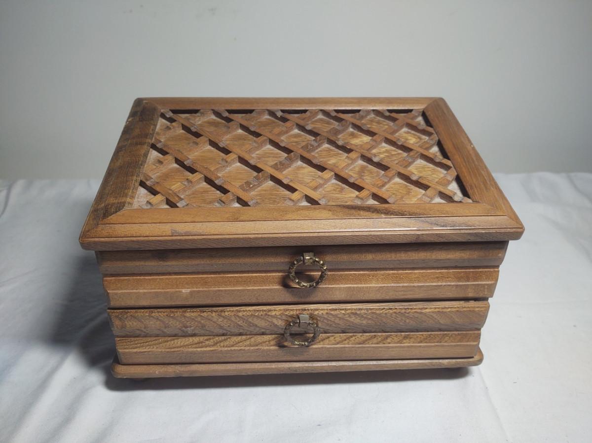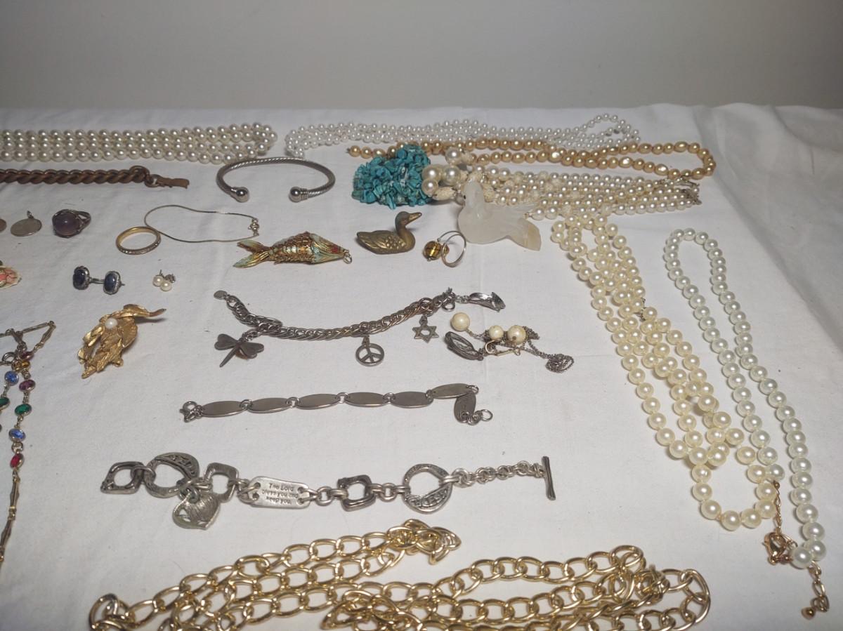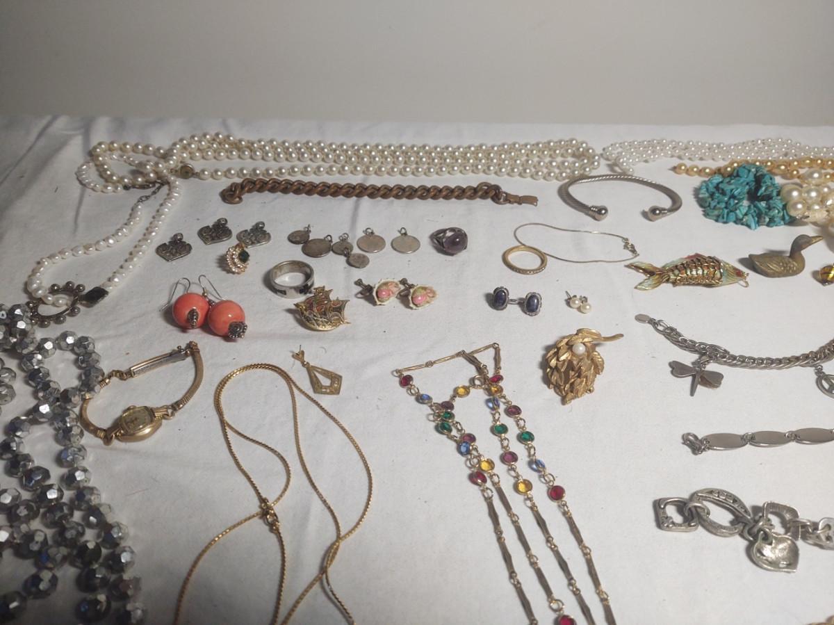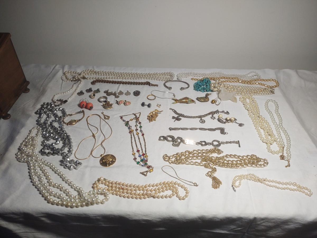 Wide variety of jewelry and wooden jewelry box. See pictures for more detail.