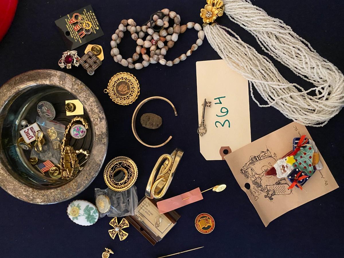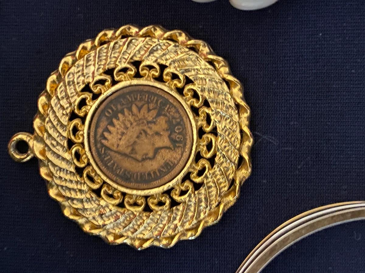 Costume jewelry lot as pictured including 1907 Indian head penny pendant