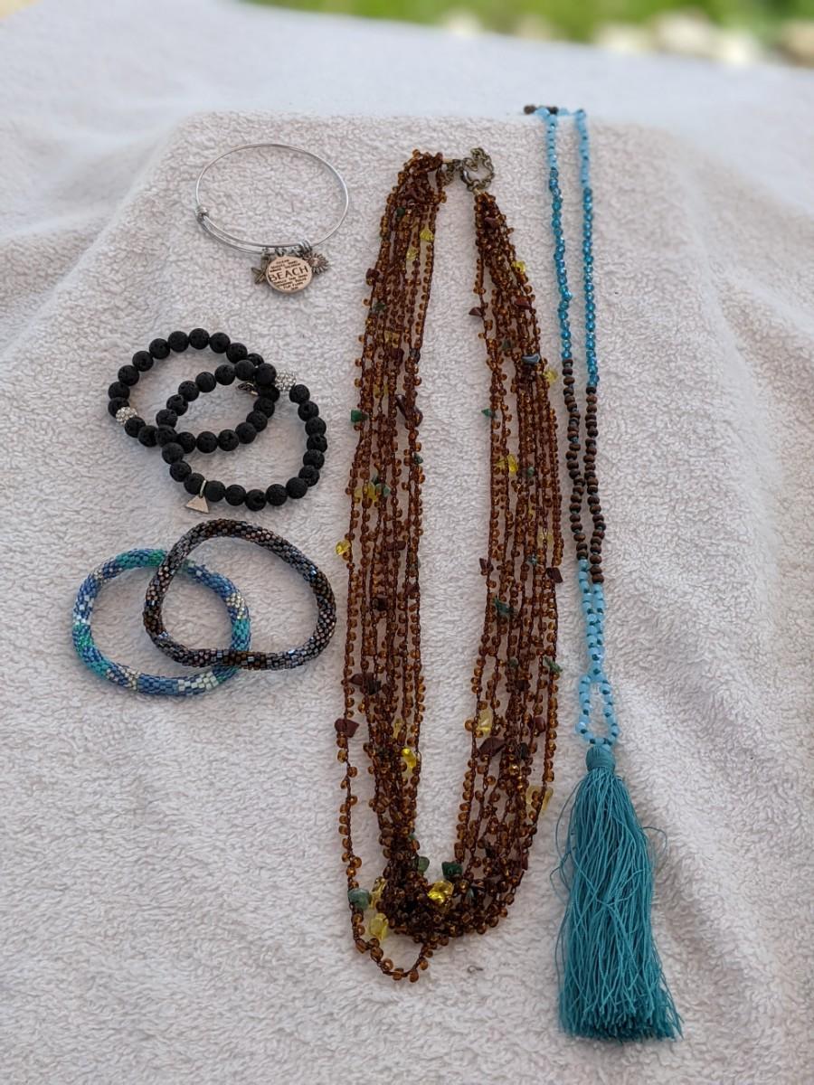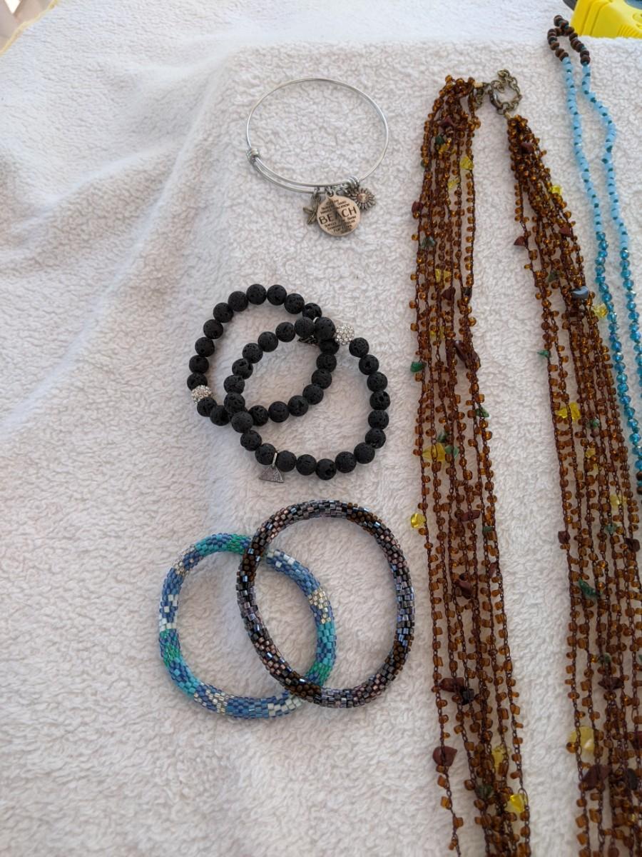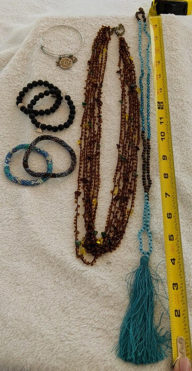 Two great long necklaces, five bracelets. Please see all pictures as they are the best representation of the items. The pictures show condition, measurements if taken, and what is included in the lot. Due to the large amount that we photograph and the time frame, we are not always able to take measurements. All items unless noted, are pre-owned and have been used. If you purchased furniture, you must bring help. We do not allow one person to carry large furniture out on their own. Bring help, tools and a truck for the safety of our client’s homes, and your personal safety.