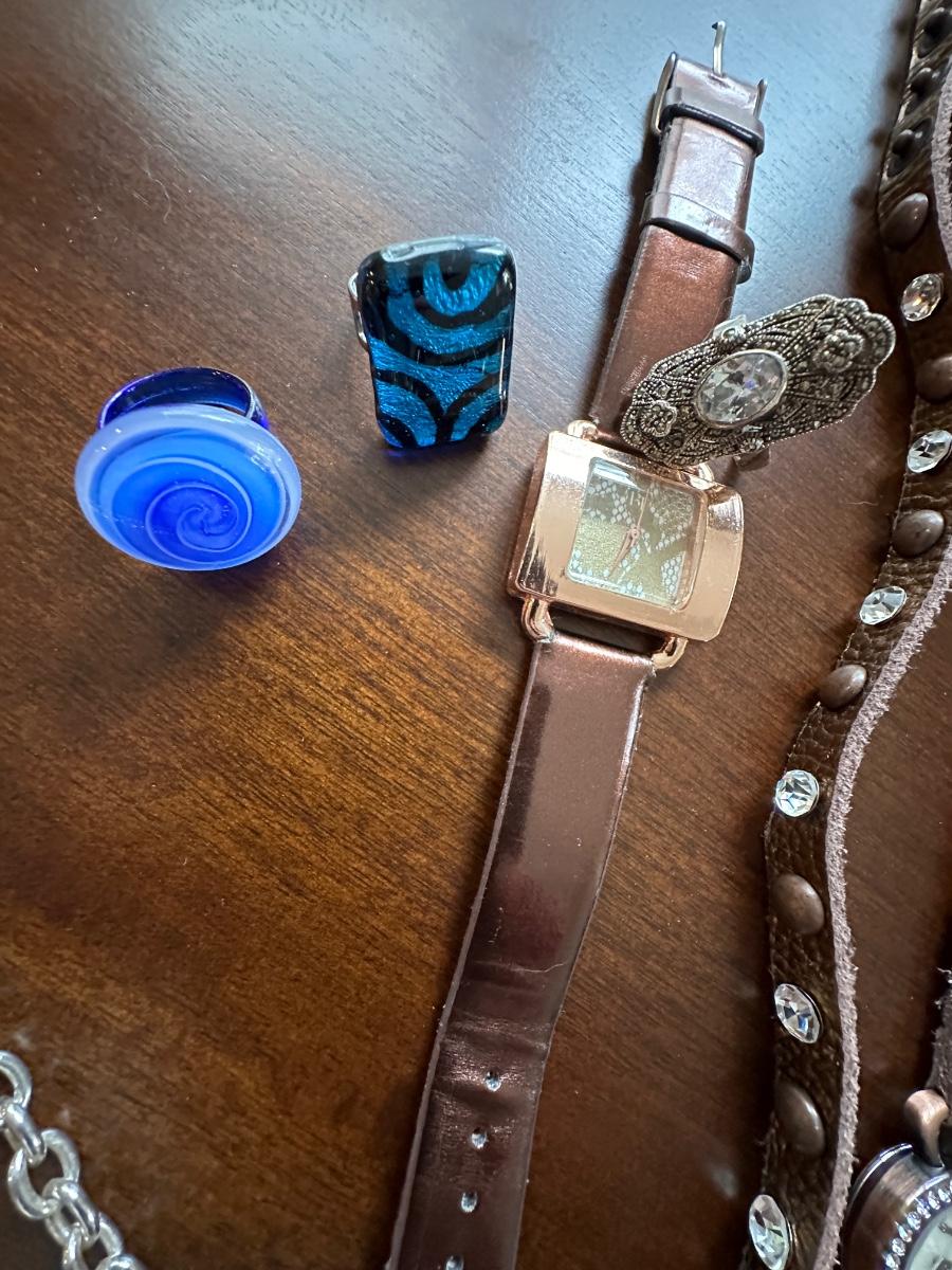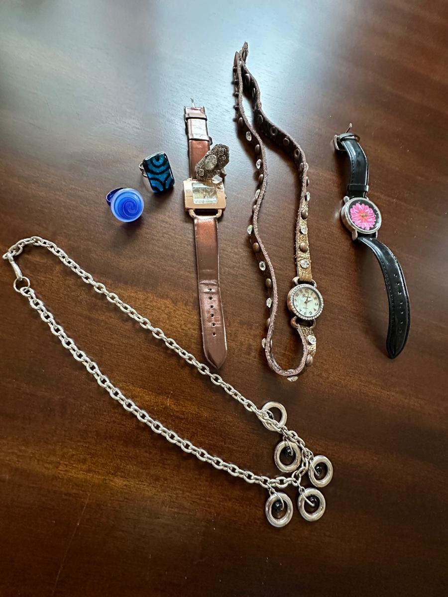 costume jewelry lot 3 watches, 3 rings, 1 neckalces as pictured