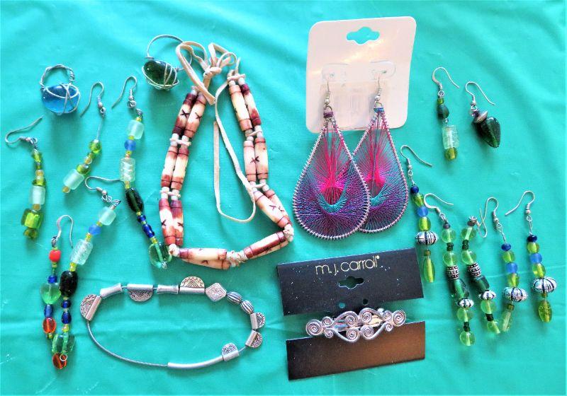 Misc Costume Jewelry LOT of Beaded Earrings, Pink/Teal String Earrings (India) India, Bracelets Silver Stone Rings Misc LOT