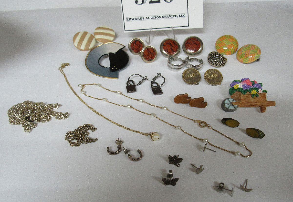 Costume Jewelry Lot: Earrings, Pins, Necklaces