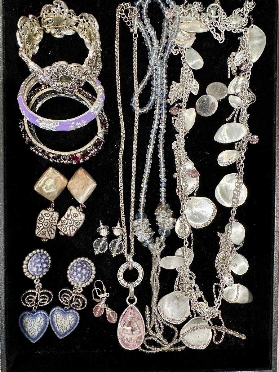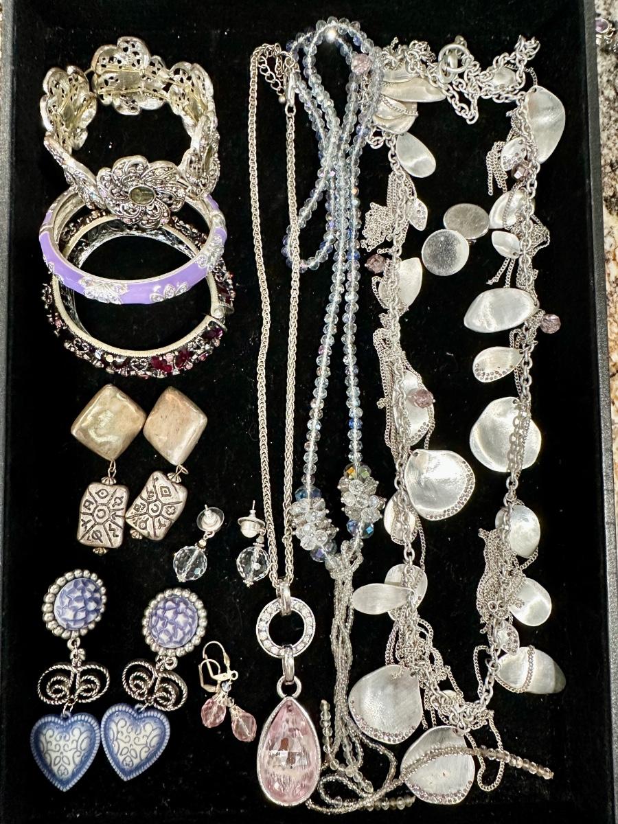 Costume Jewelry Lot H - Silver Tone, Lavender, w/ crystals