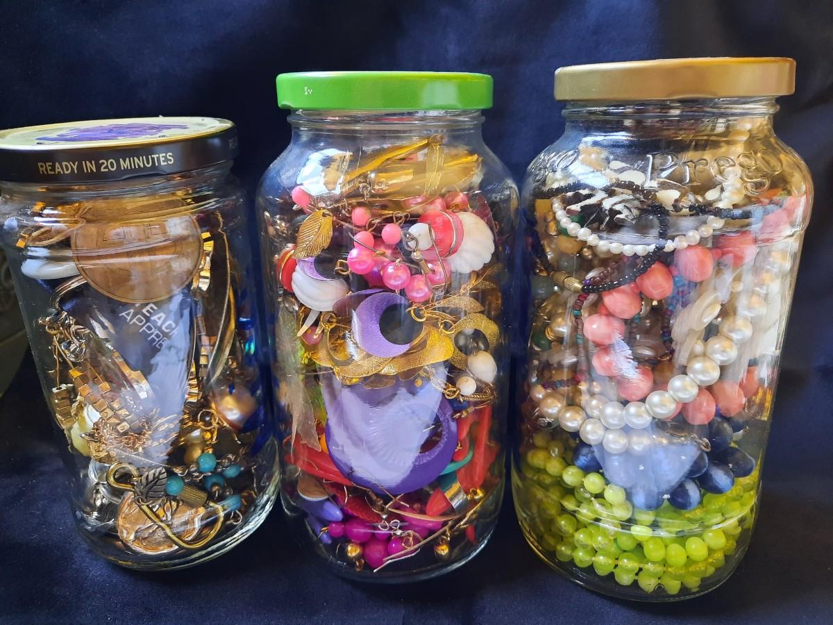 Costume Jewelry Lot of 3 Jars