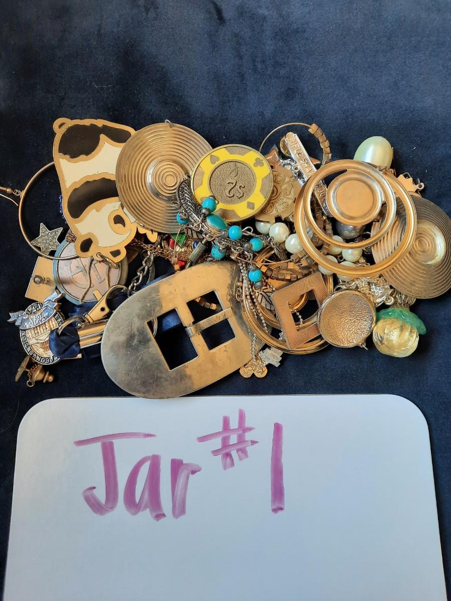 Jar #1 = Approximately 30 pieces if miscellaneous, mistly metal.