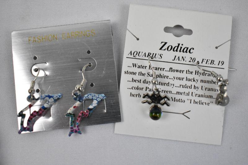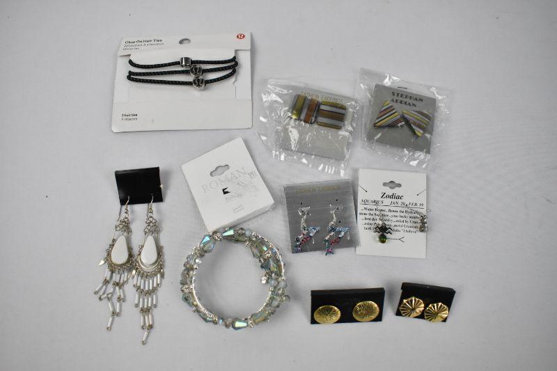 Costume Jewelry Lot of 9: Hair Ties, 7 Pairs of Earrings, and 1 Bracelet - New