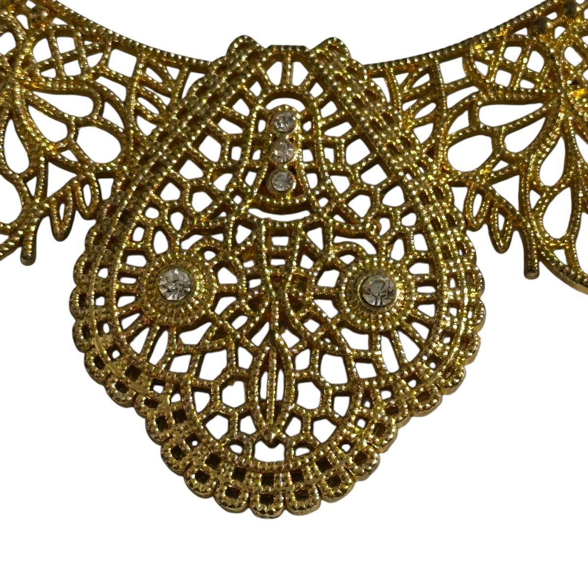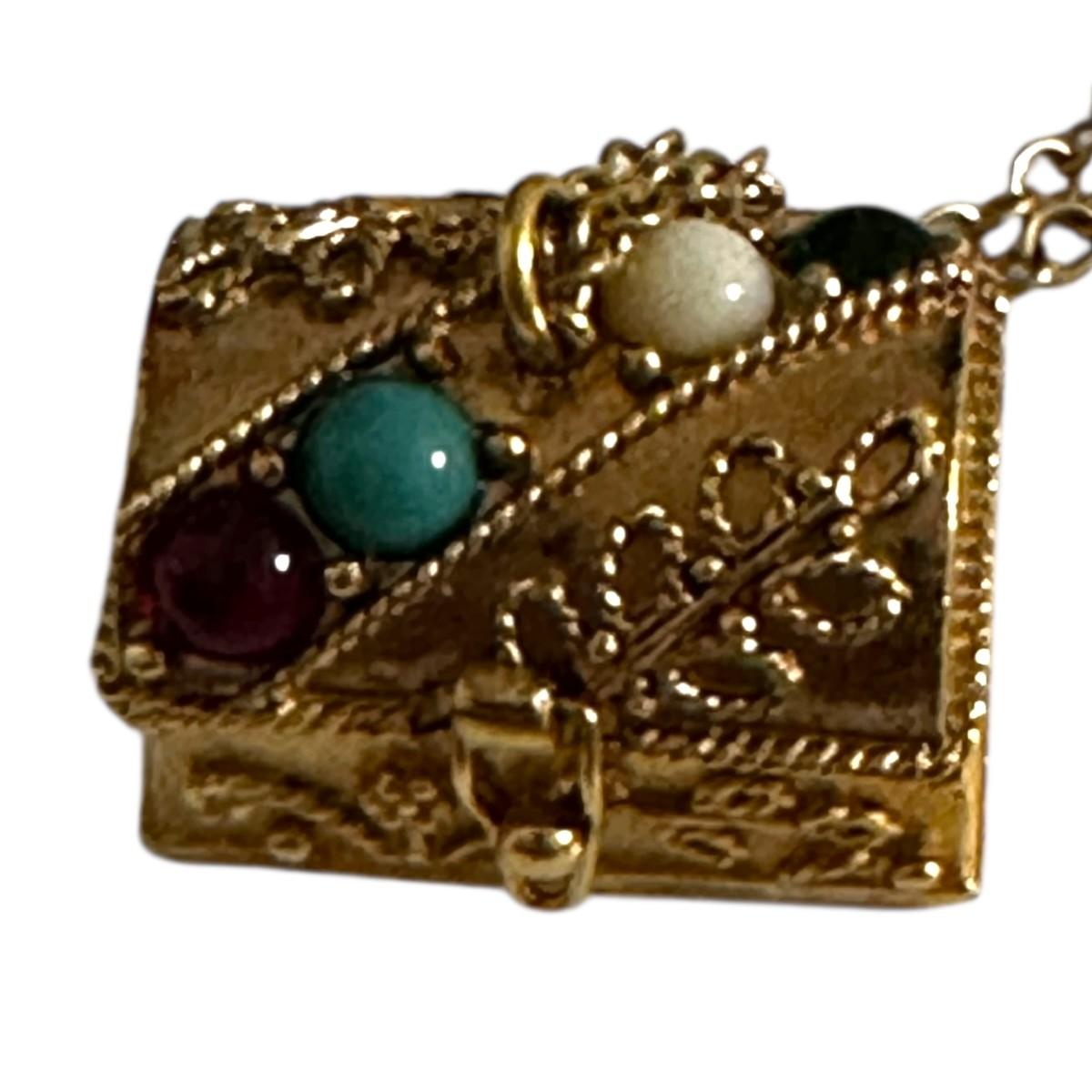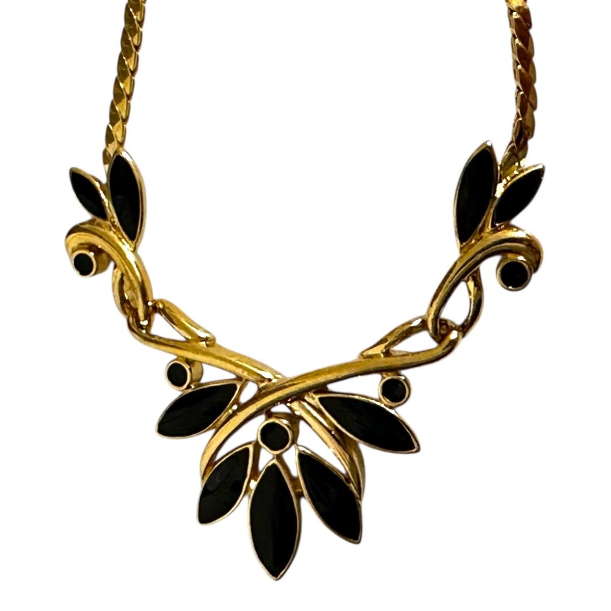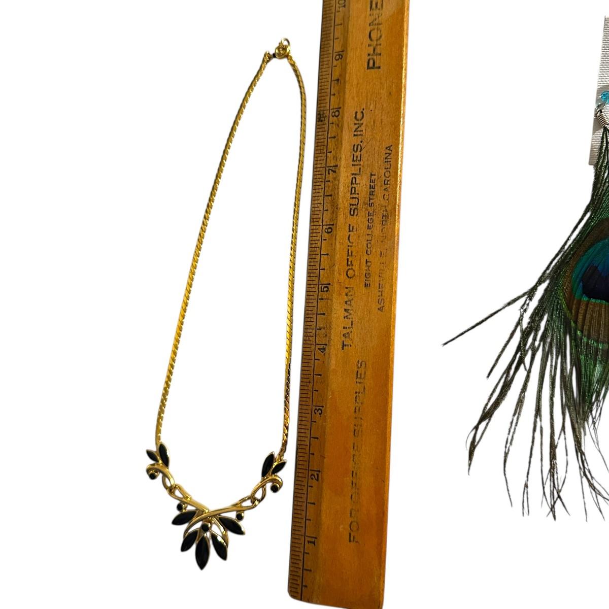 Costume Jewelry Lot of Gold Colored Necklaces, black teardrop necklace is Trifari, and treasure box is Avon.