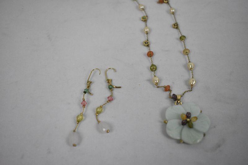 Costume Jewelry: Macy's Flower Necklace & Earrings, Blue/Gold Tone