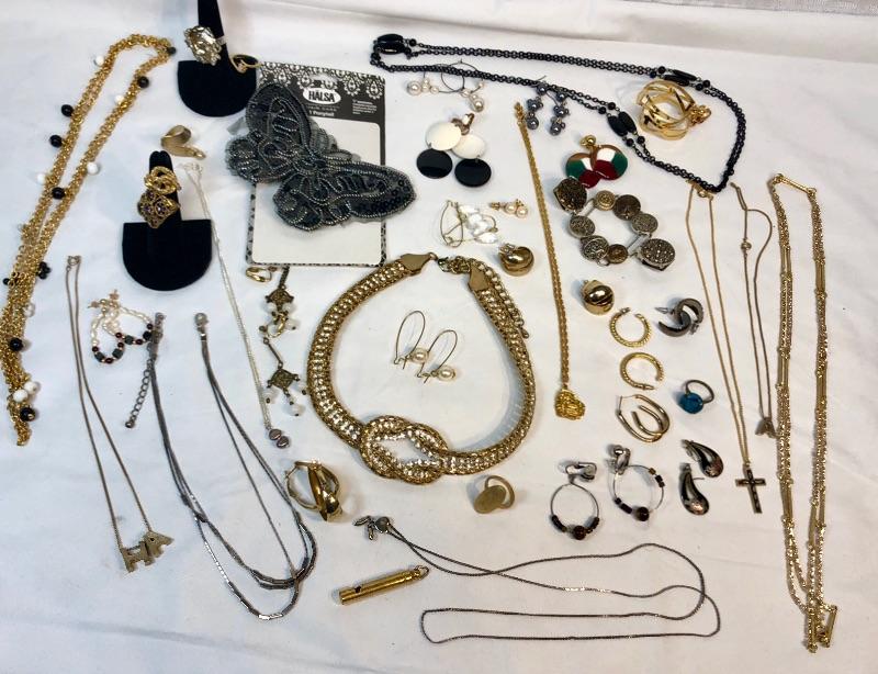 Costume jewelry, mixed lot, many different pieces. All in good condition. Some are silver.