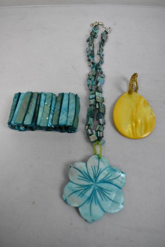Costume Jewelry: Shell-Look Necklace, Bracelet, & Pendant