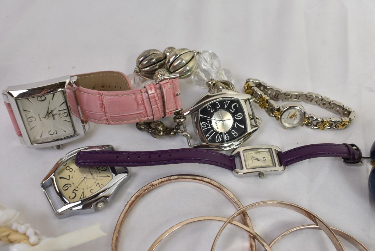 Costume Jewelry lot: Watches, Bracelets, Pins, Plus size Bangle Bracelets, Homemade Bird Nest pendant