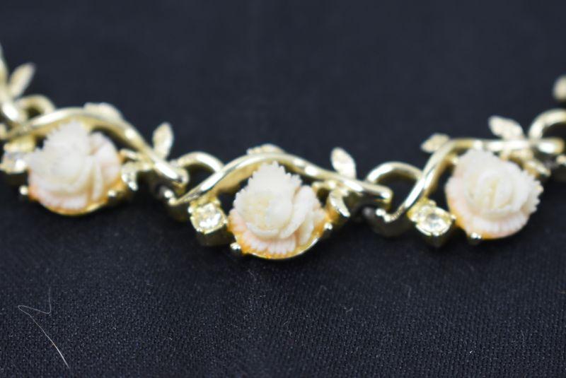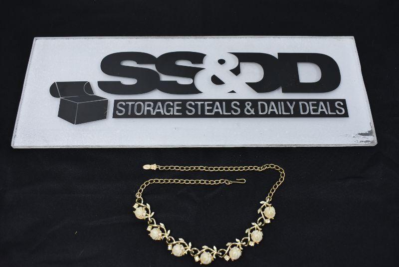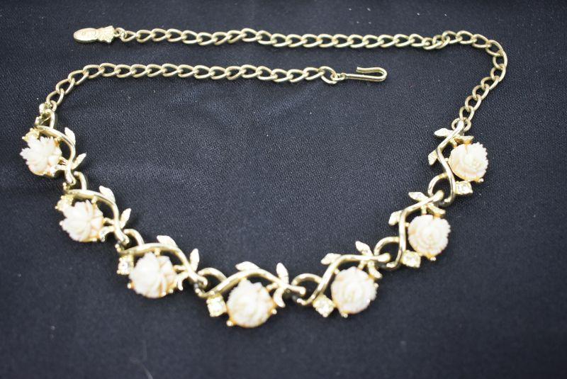 Costume Jewelry White Rose & Gold-Colored Necklace "Emmons" Vintage