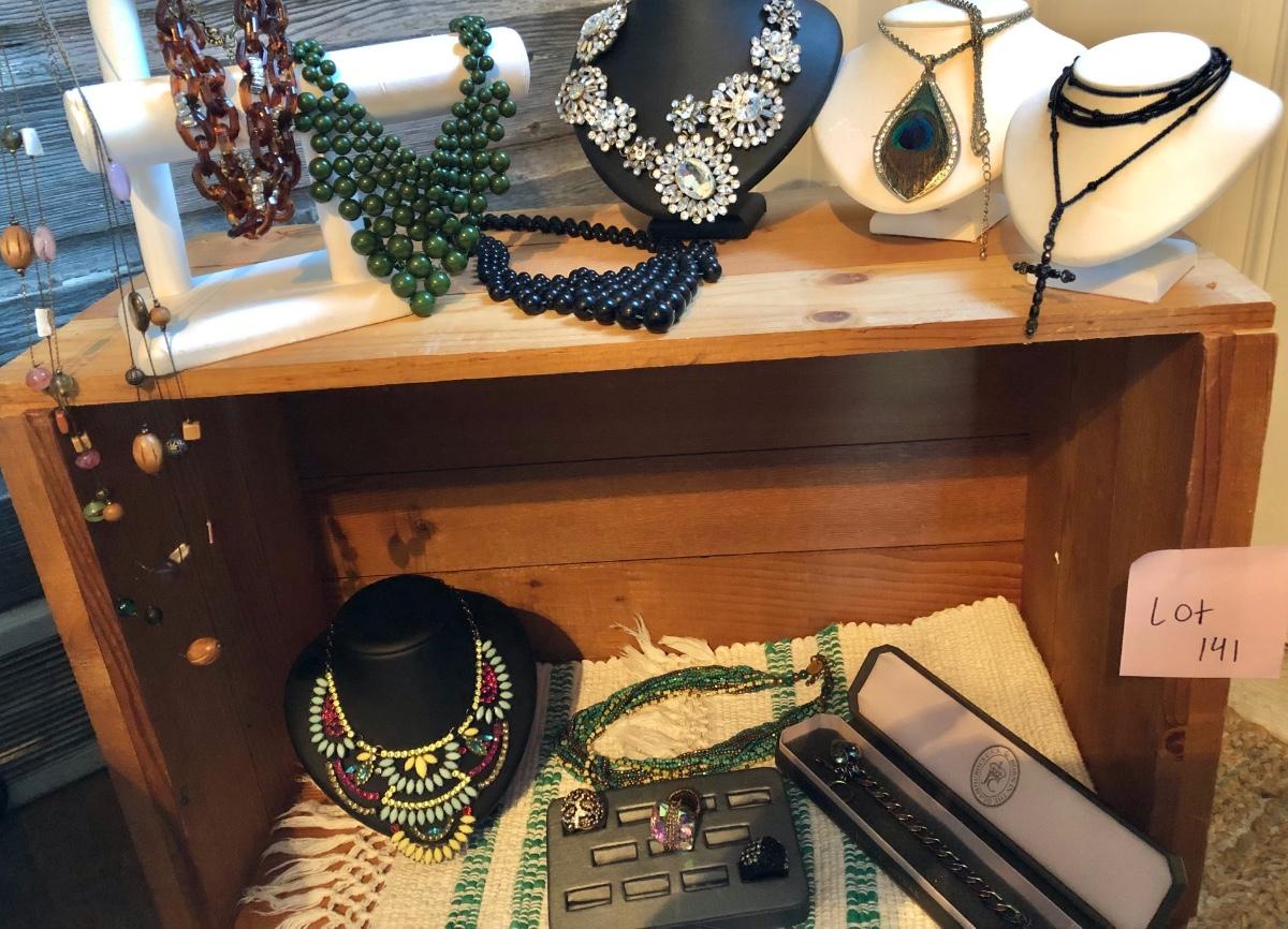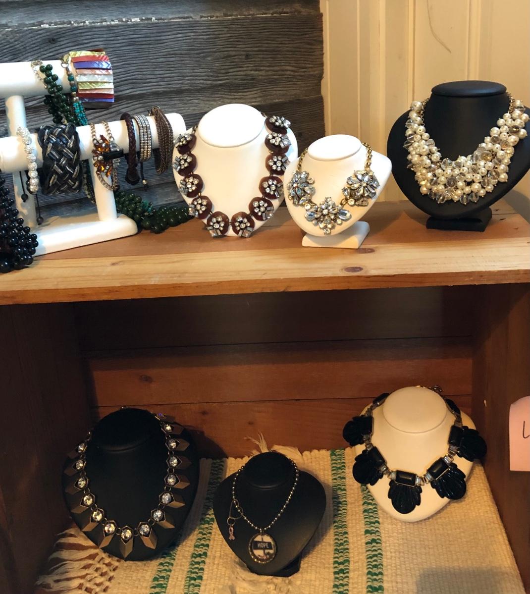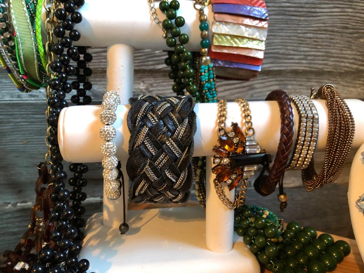 7 of the pieces are from Your Day bridal & 2 necklaces from Lia Sophia. The 2 smaller rings are about a size 7-7.5 & the other is stretchy. Every necklace is adjustable.