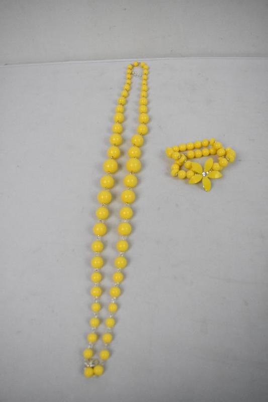 Costume Jewelry: Yellow/Flower Necklace & Bracelet