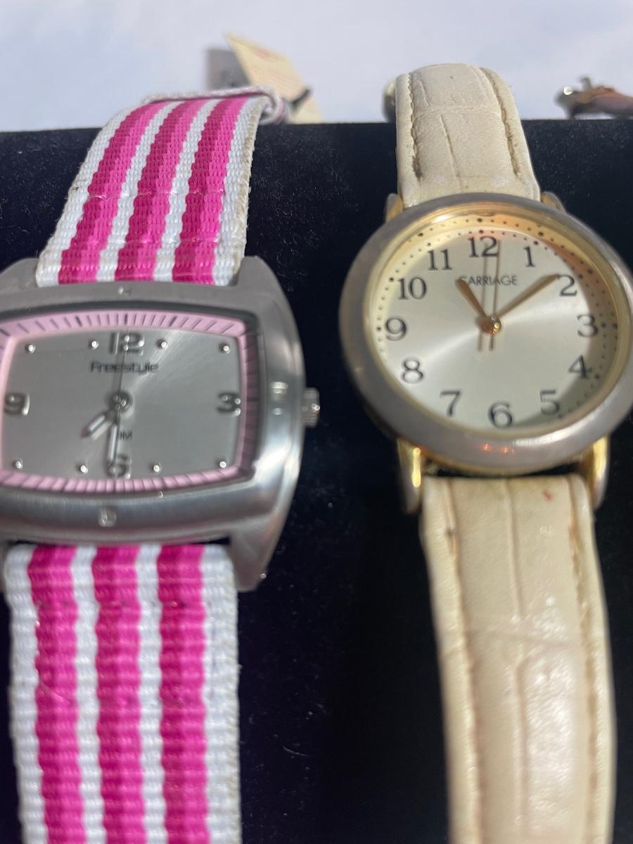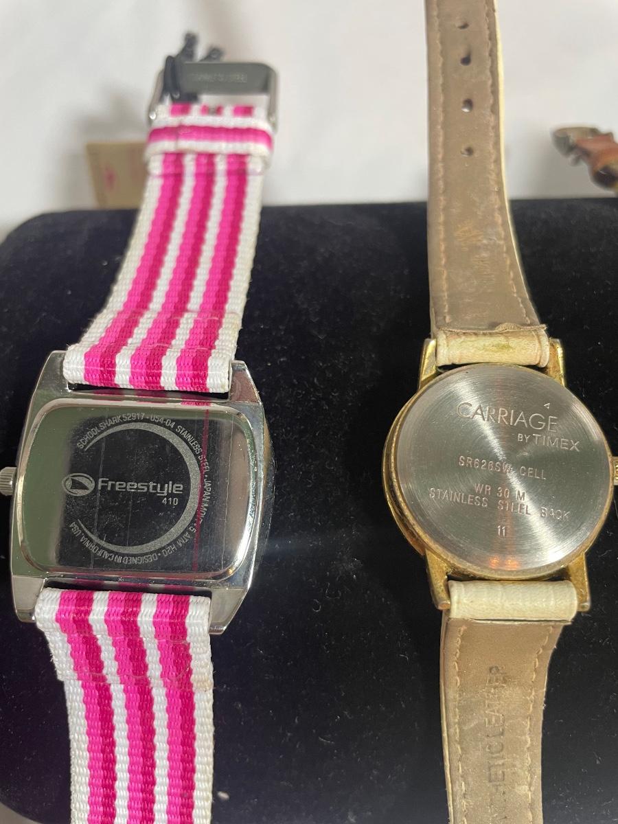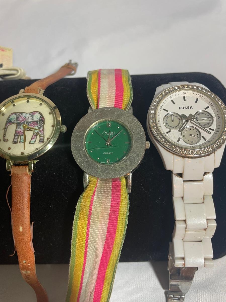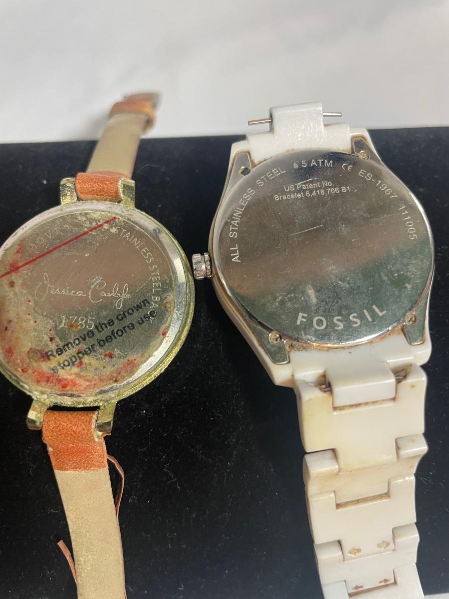 This large lot includes 6 watches Quartz and Fossil (note the band on the Fossil is broken) and more, lots of beaded necklaces, pendants, post earrings, bracelets and more.