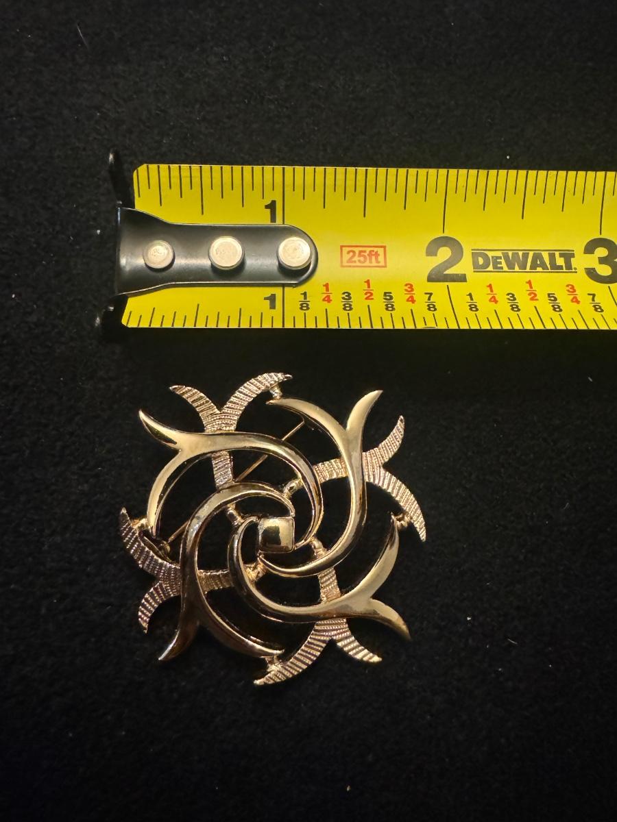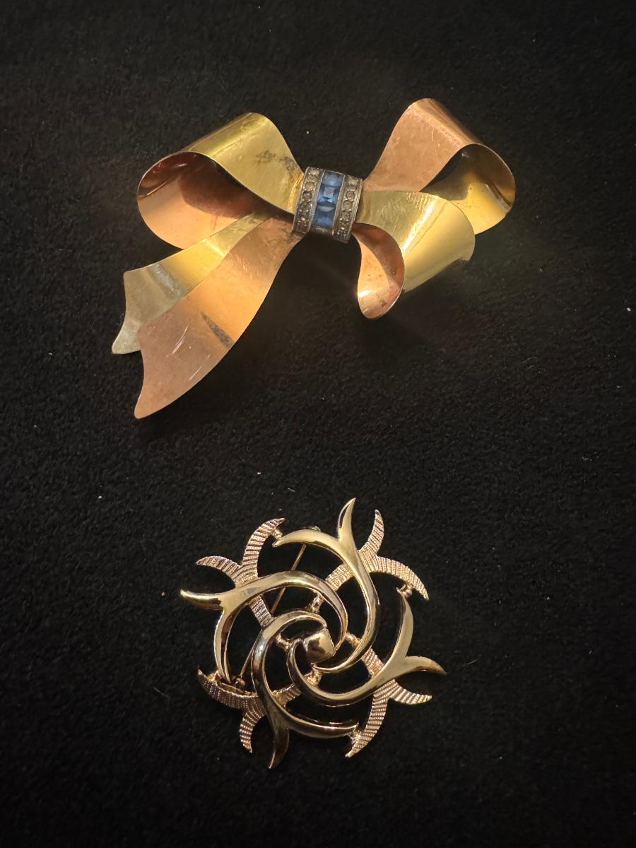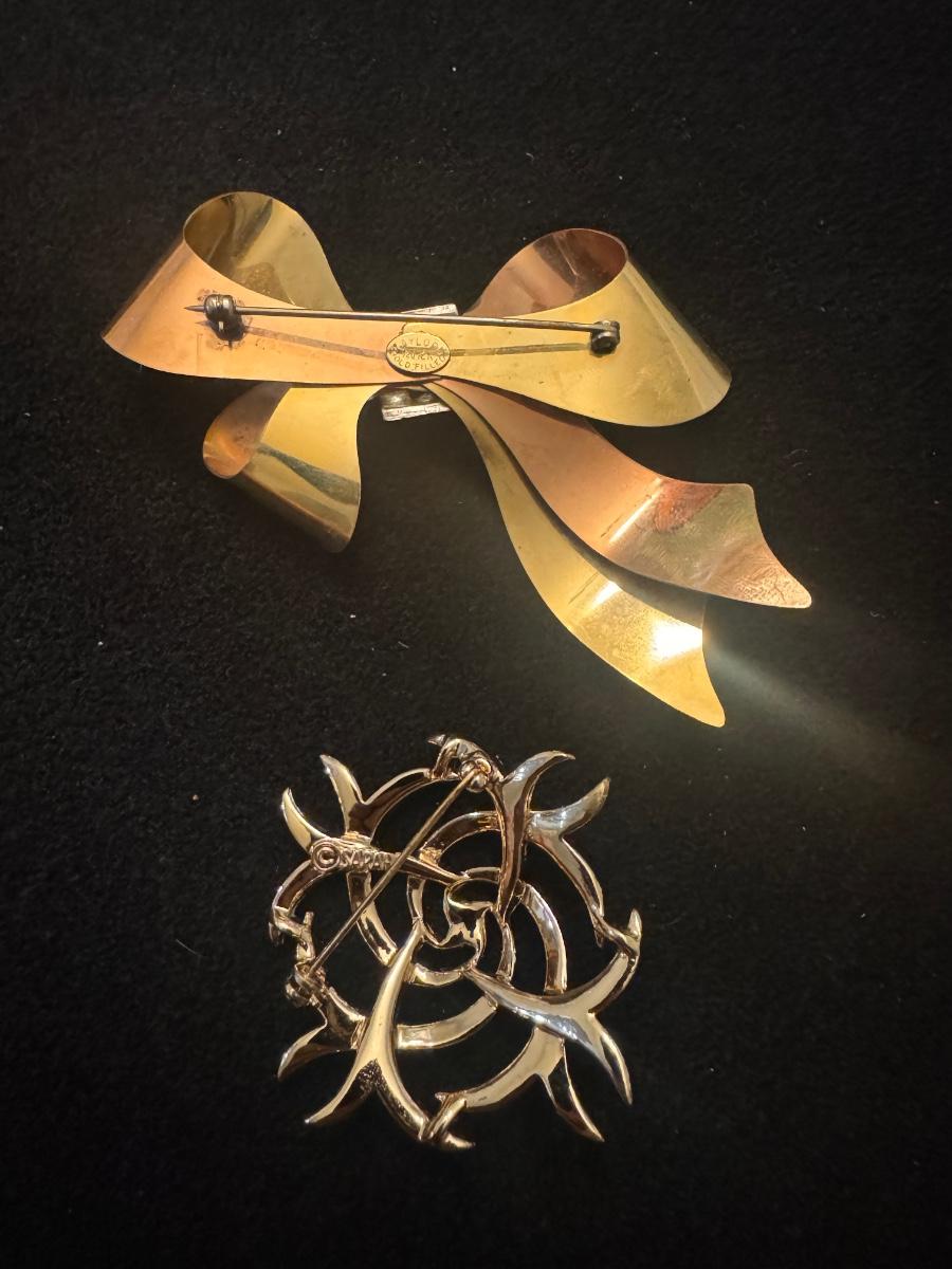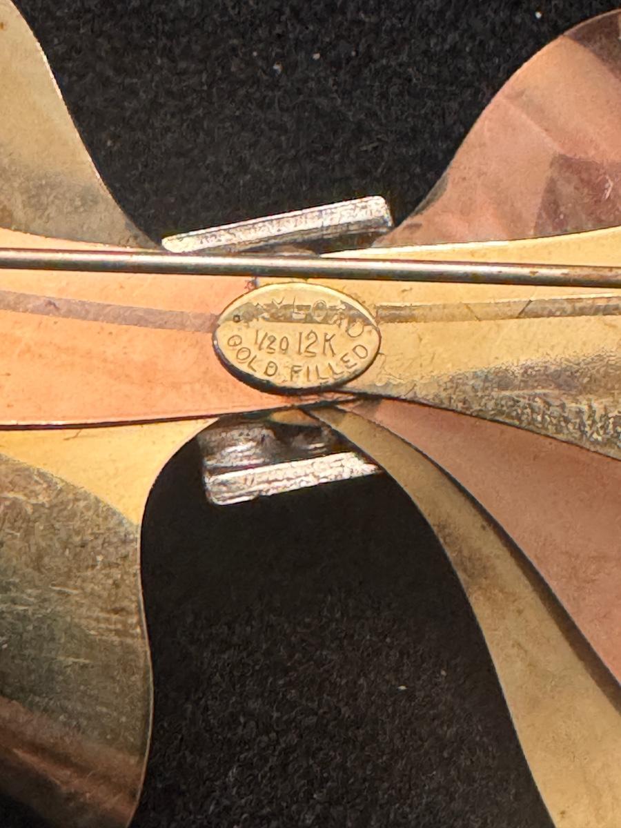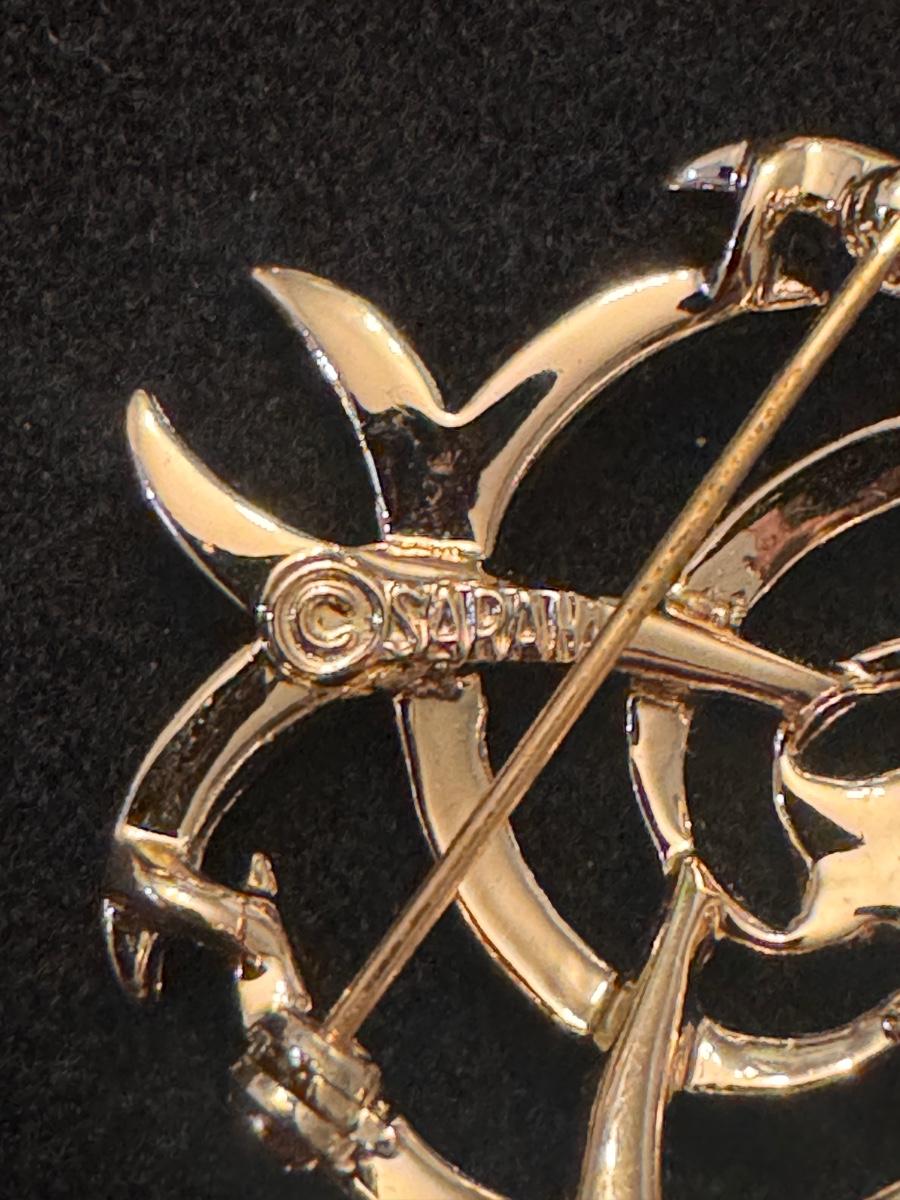 The smaller of the two is gold tone not gold filled and made by Sarah