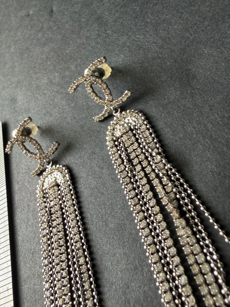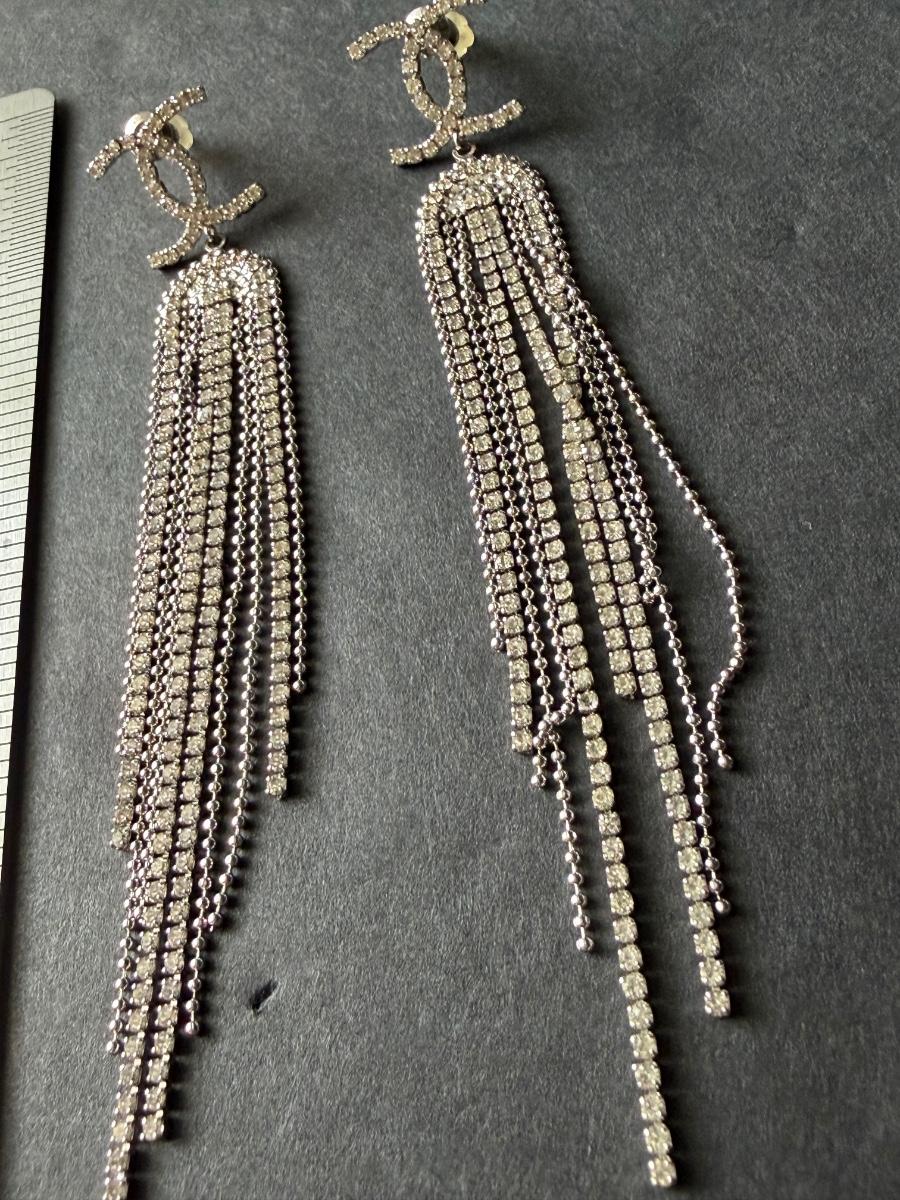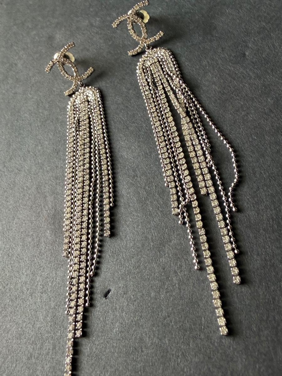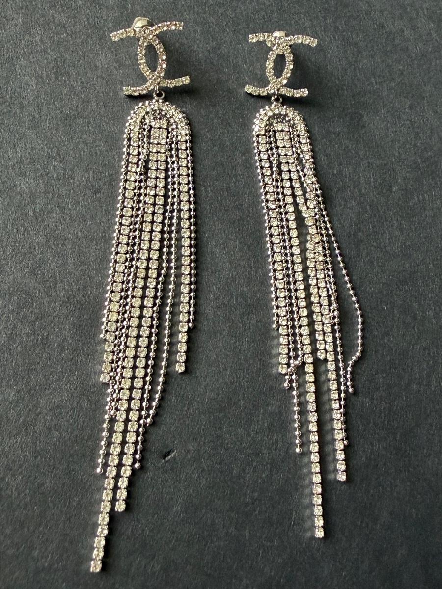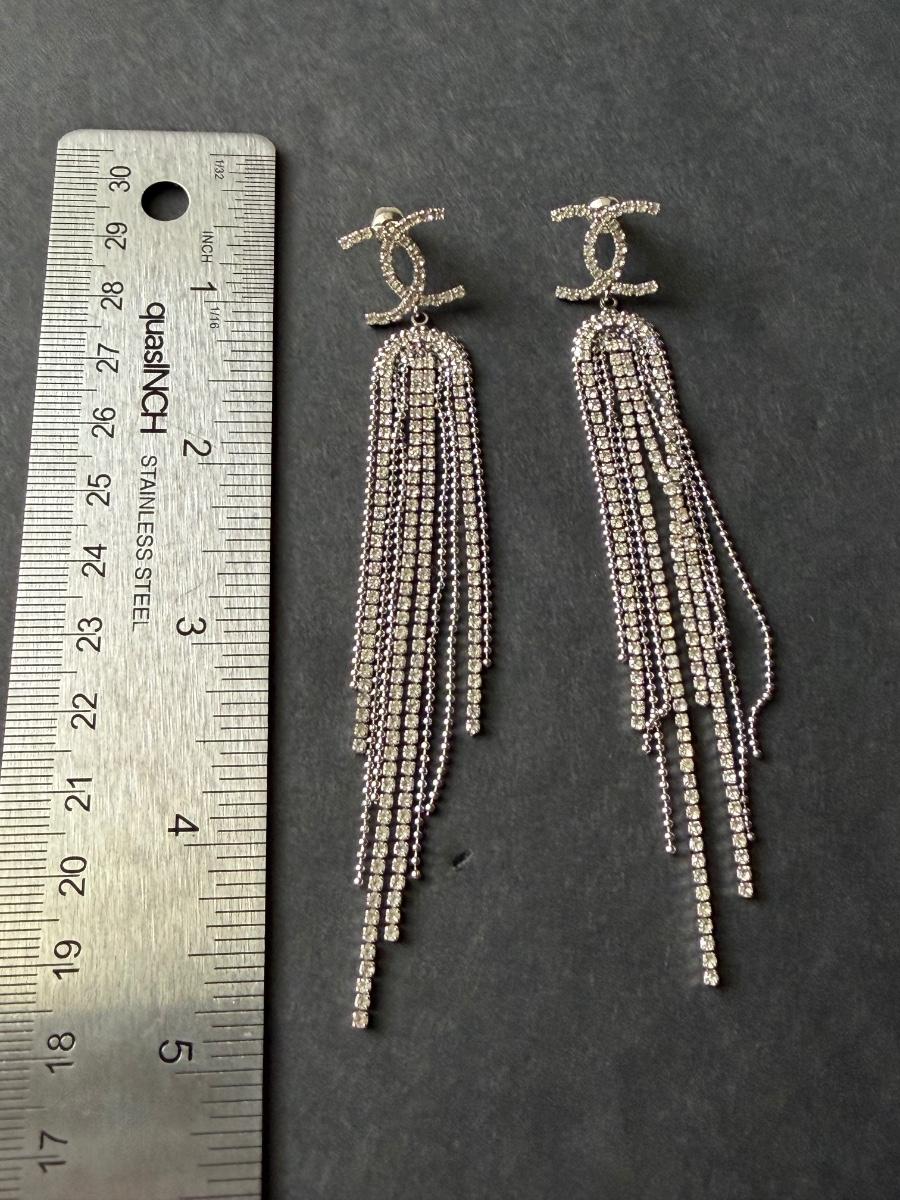 Costume rhinestone dangle tassel earrings