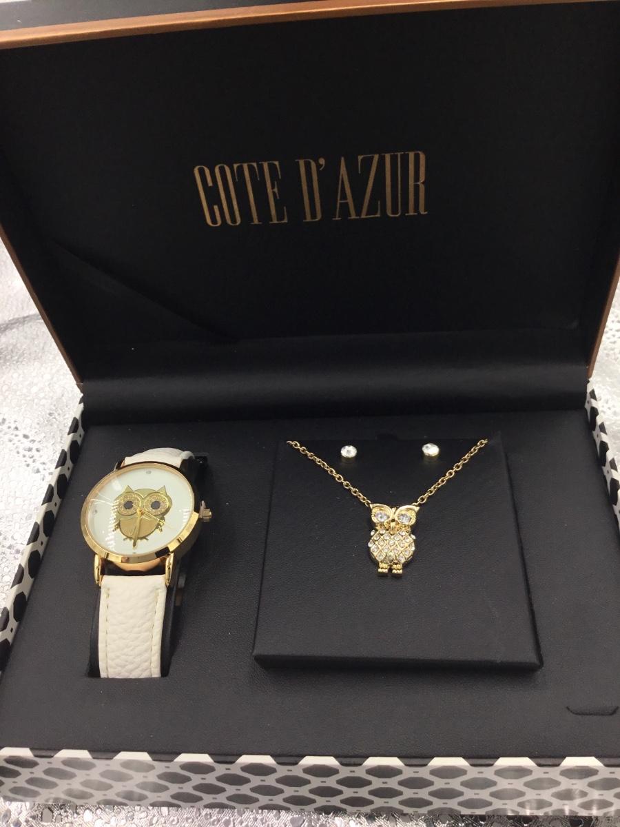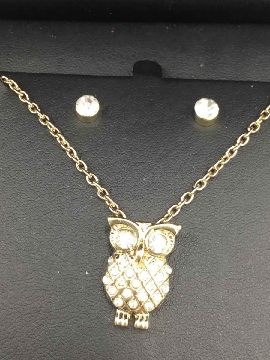 COTE D AZUR. owl jewelry set gold tone