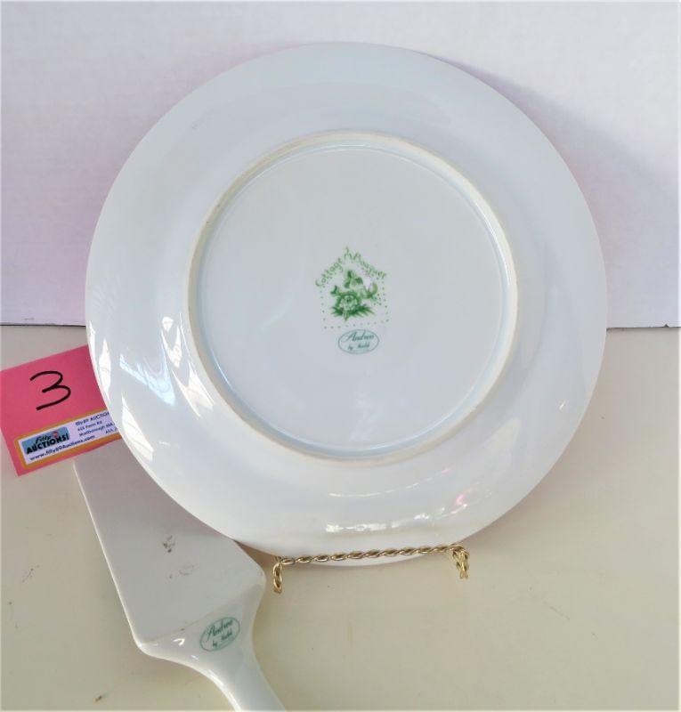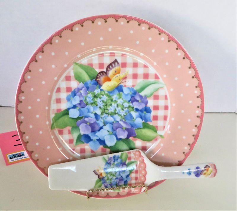 Cottage Bouquet Cake Pastry Plate w/ Server Sadek Japan Butterfly Floral 10.5"