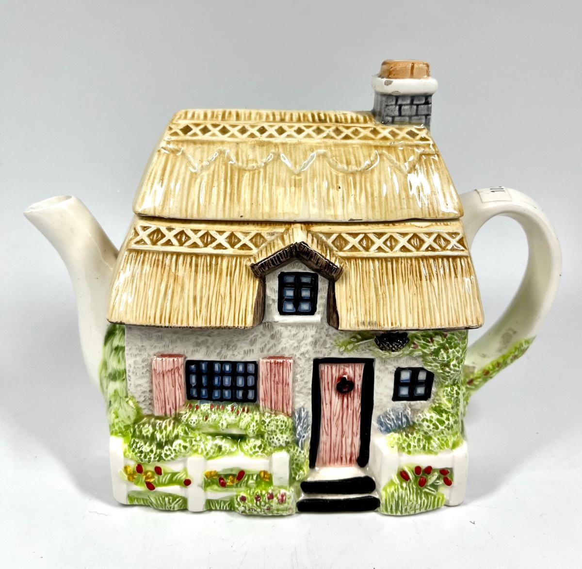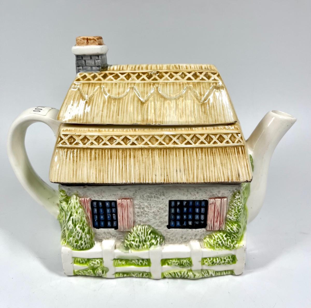 Ceramic Cottage House Shaped Novelty Teapot. In good condition.