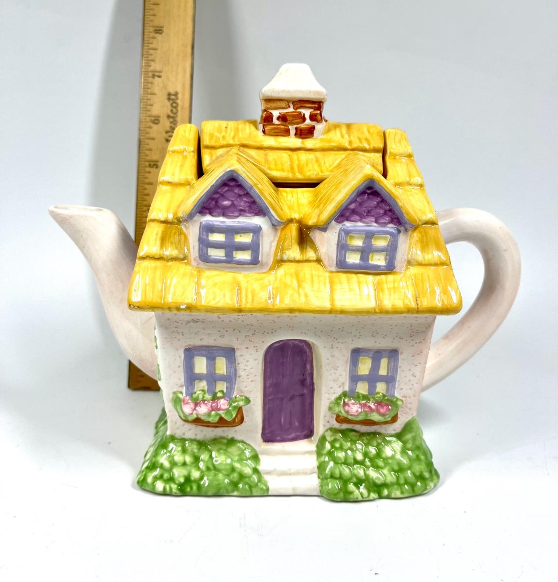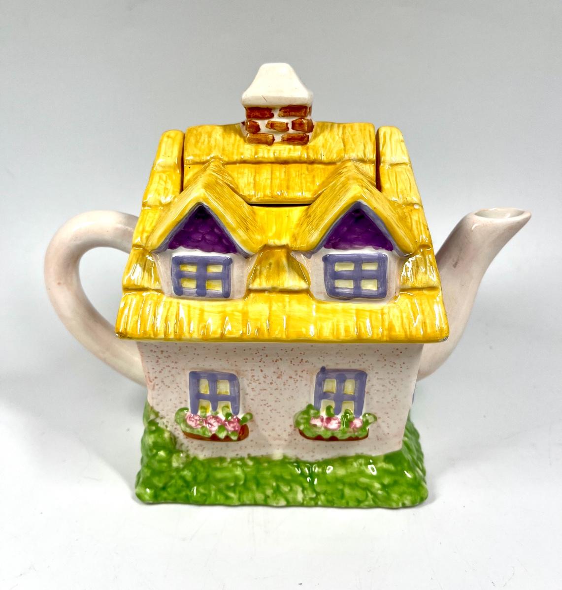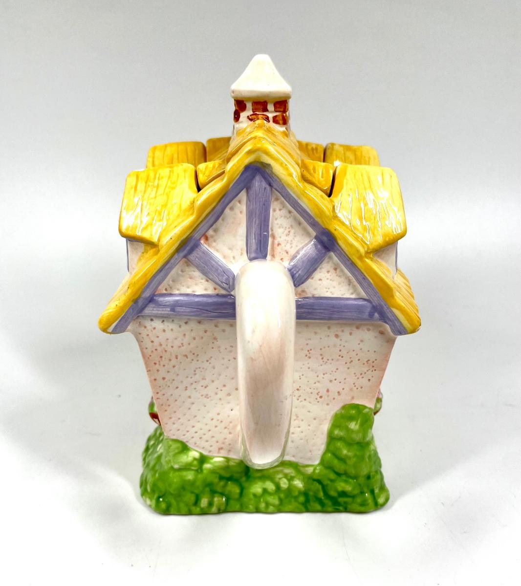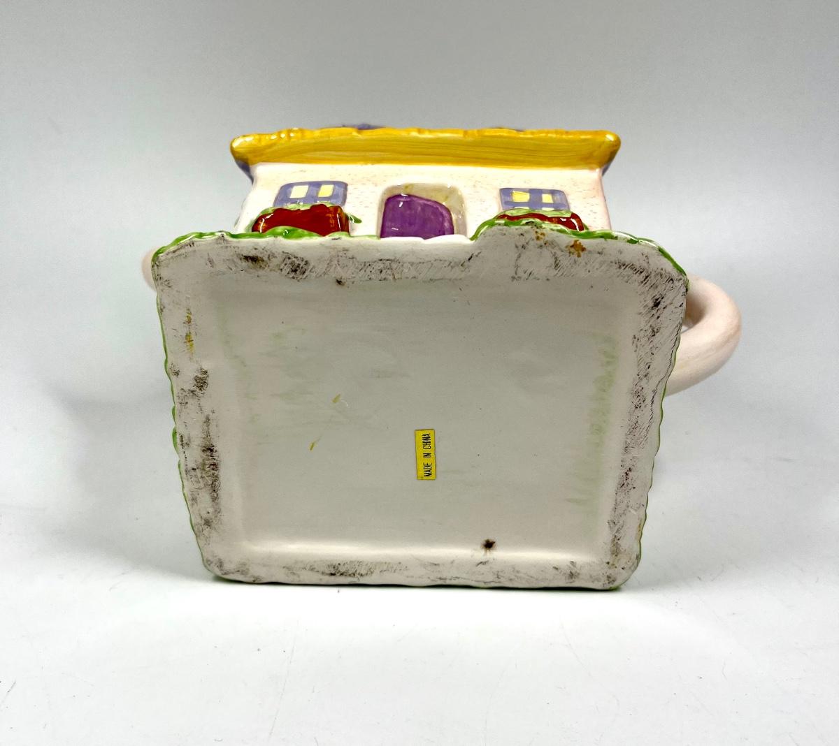 Yellow & White Cottage House Shaped Novelty Ceramic Teapot