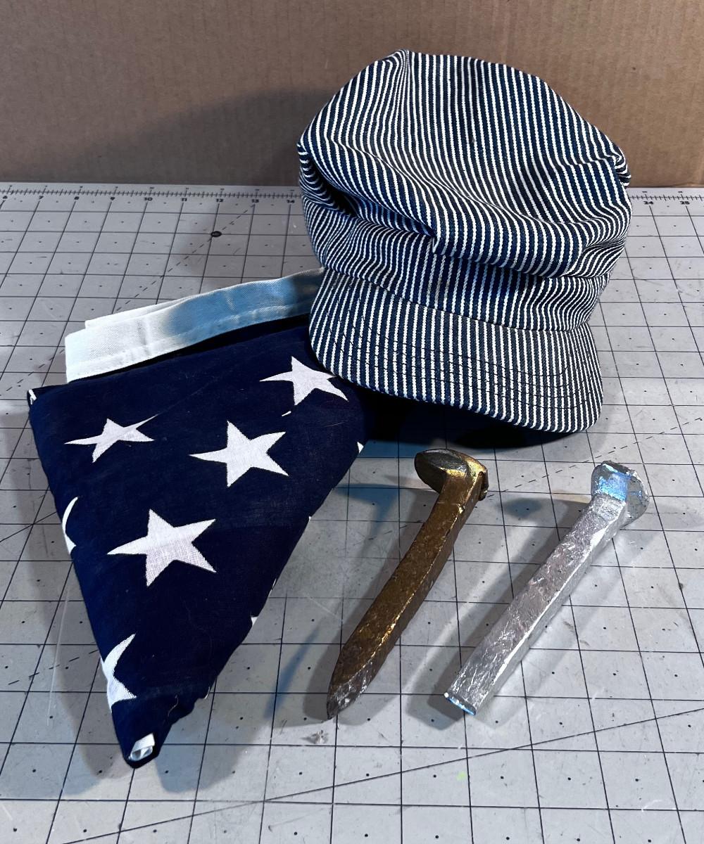 Cotton 50 Star Flag, Engineers Cap and RR Spikes