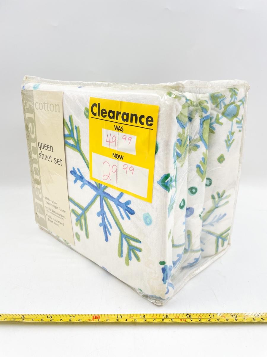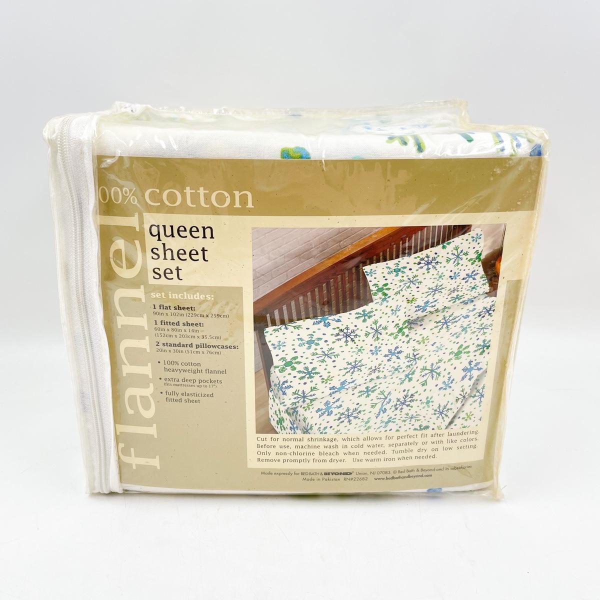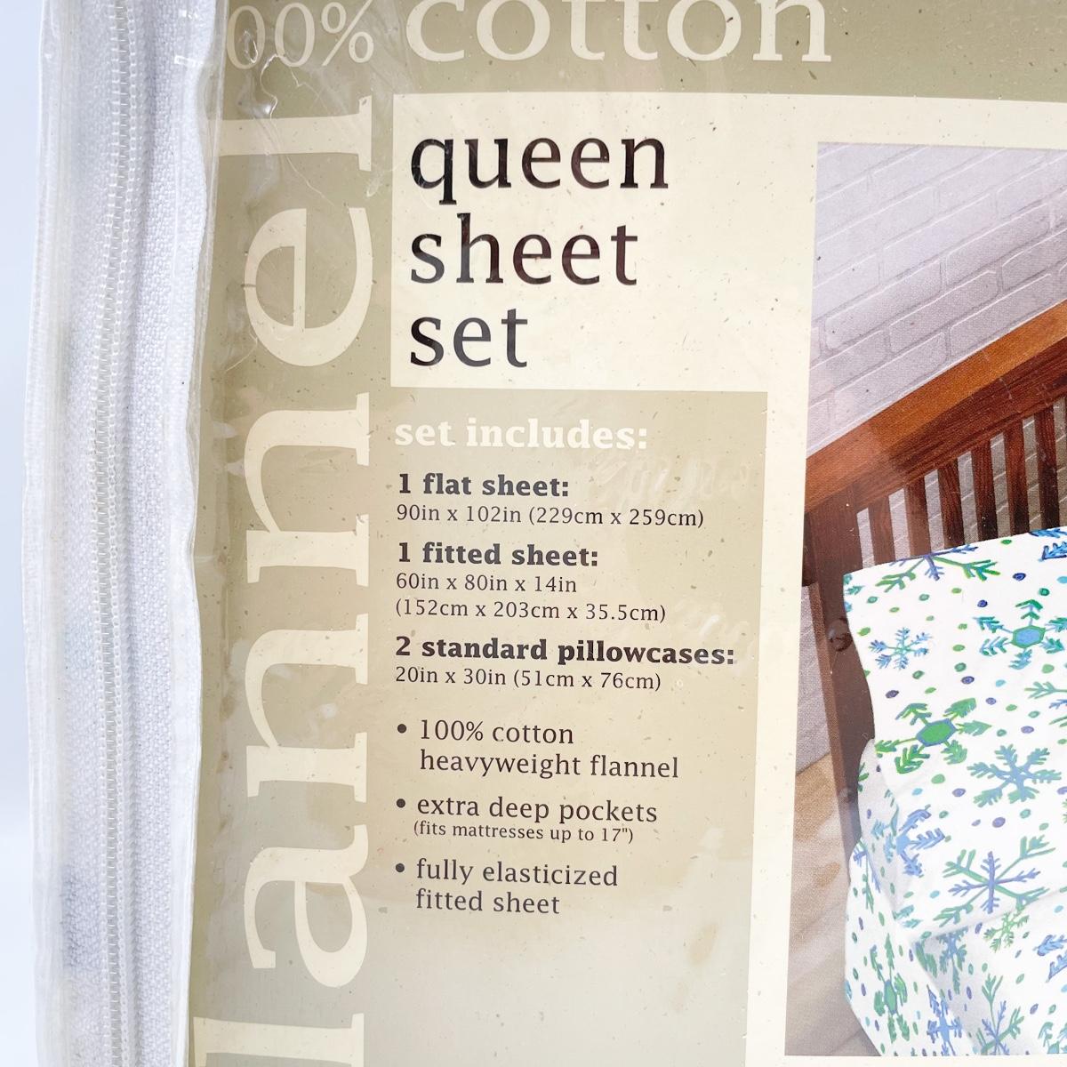 COTTON FLANNEL SNOWFLAKE SHEET SET - QUEEN