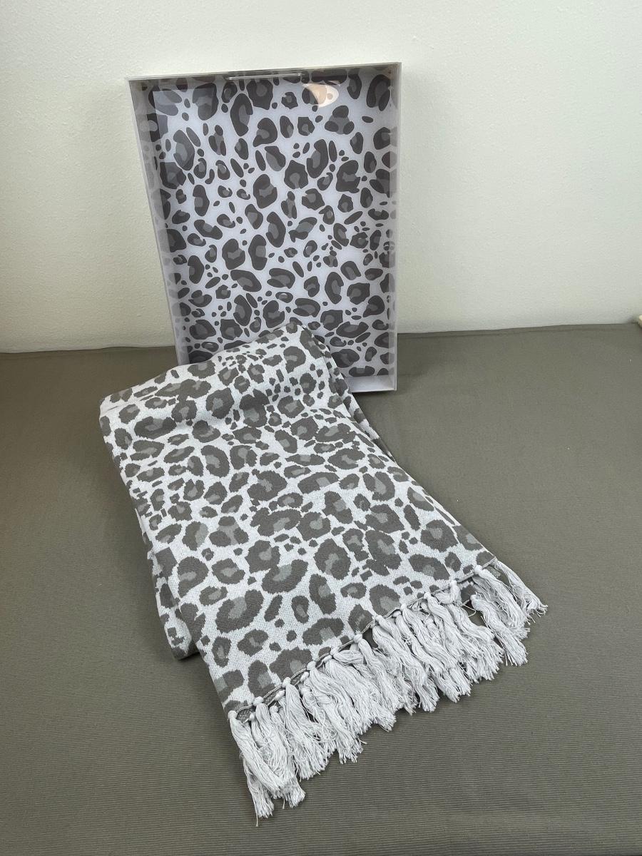Cotton Throw Blanket Grey Leopard with Acrylic Tray Lot B