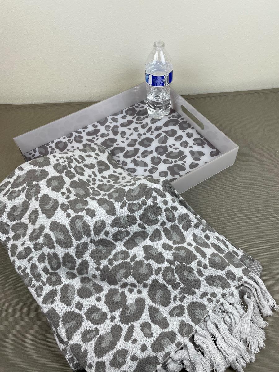 Cotton Throw Blanket Grey Leopard with Acrylic Tray Lot B