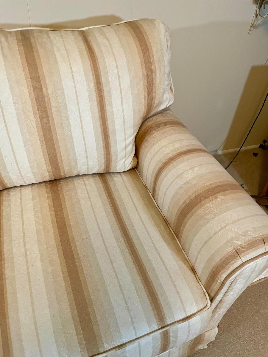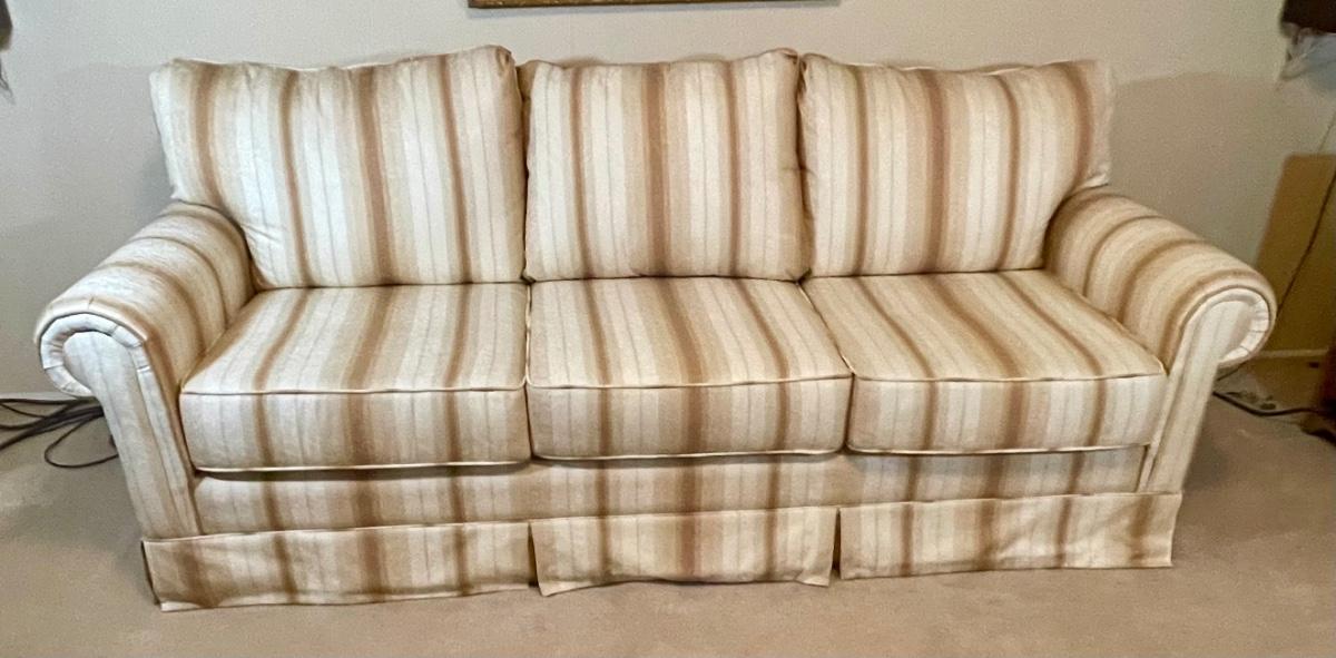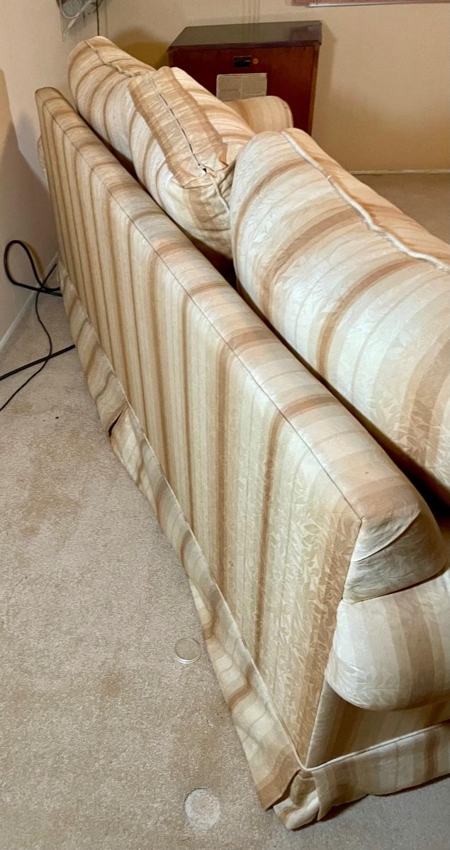Manufacturer unknown. Has 2 matching square pillows, couch looks new, barely used. Measures approx. 92” long, 36” deep, 36” tall. No stains, tears or any visible damage.
