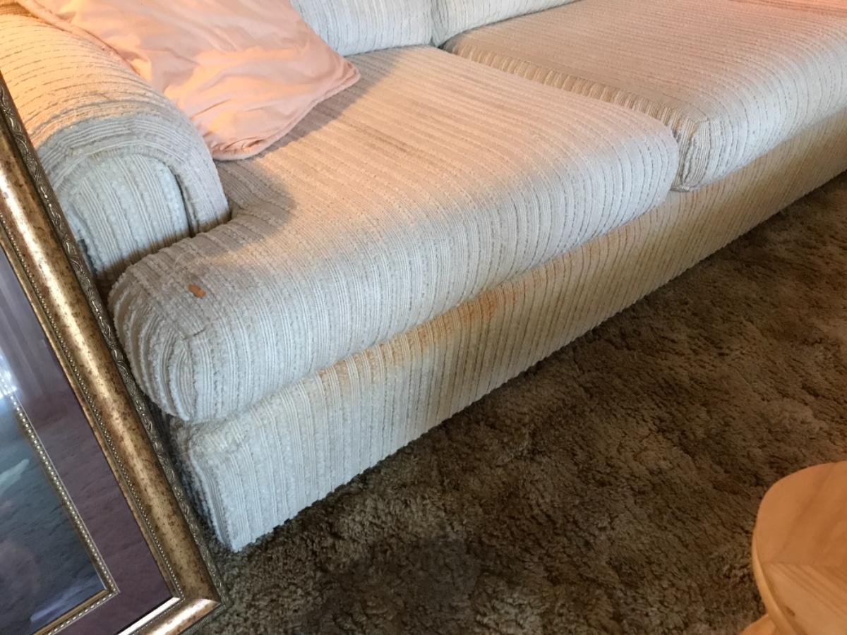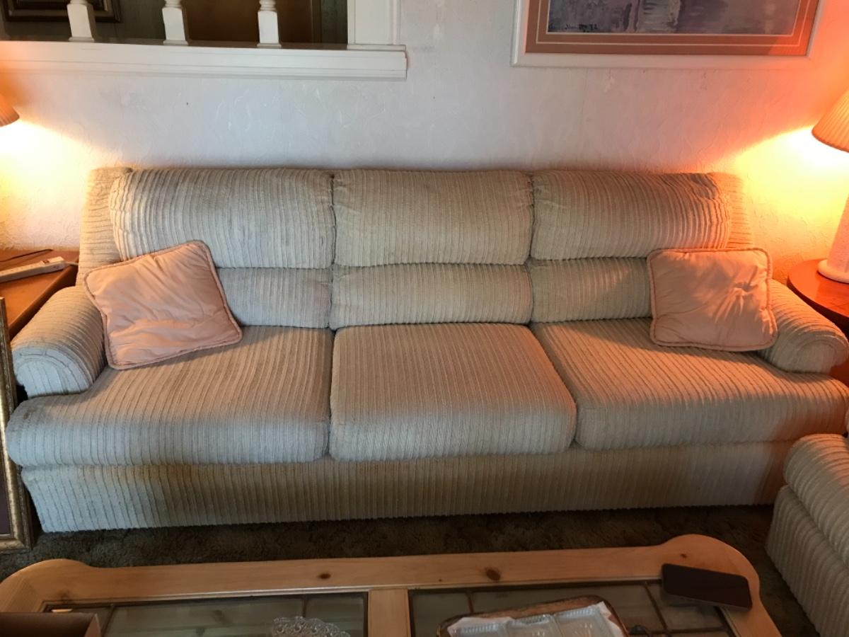 Couch, 3 cushion, cream colored vintage upholstered furniture