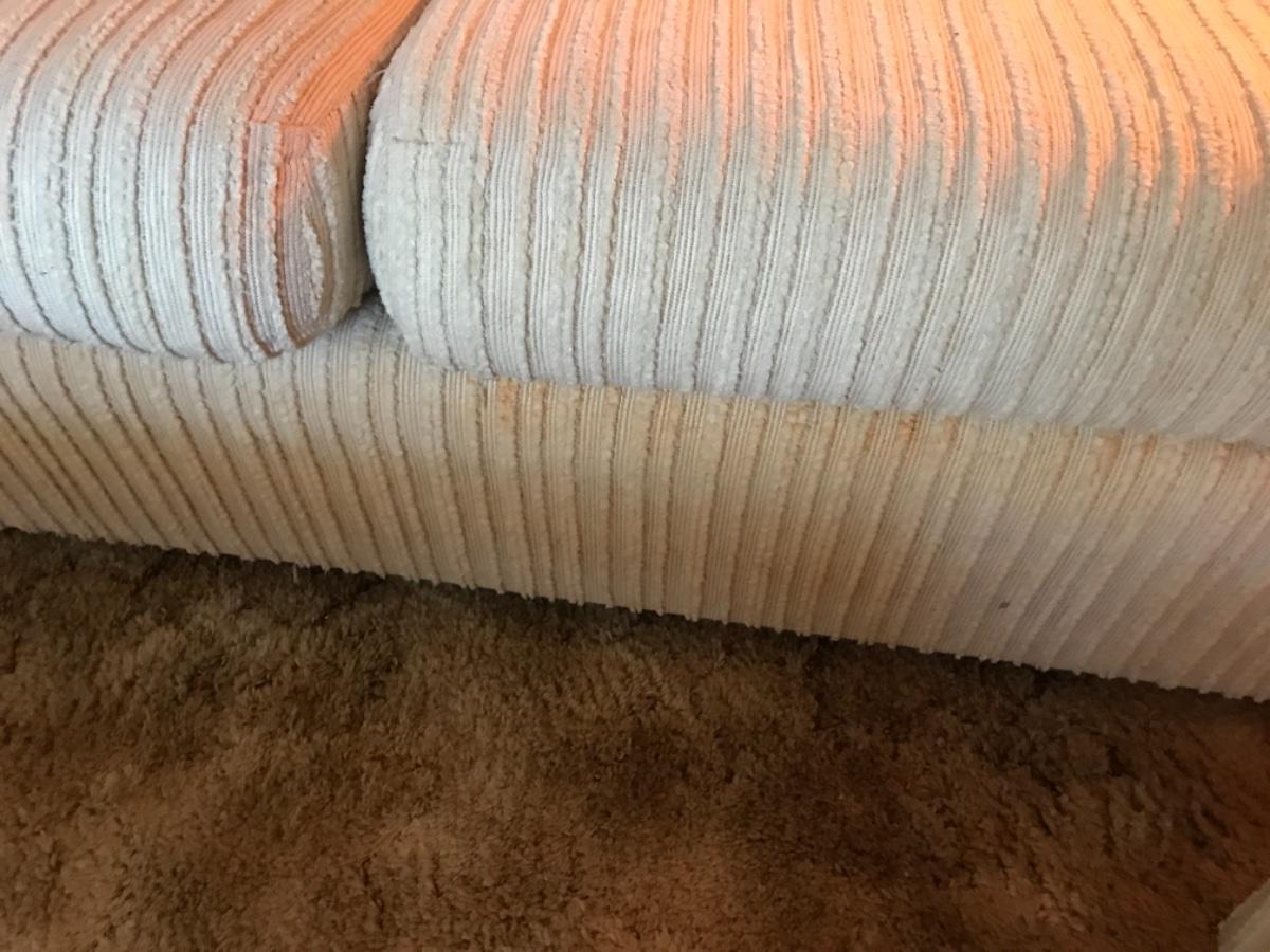 Couch, 3 cushion, cream colored vintage upholstered furniture
