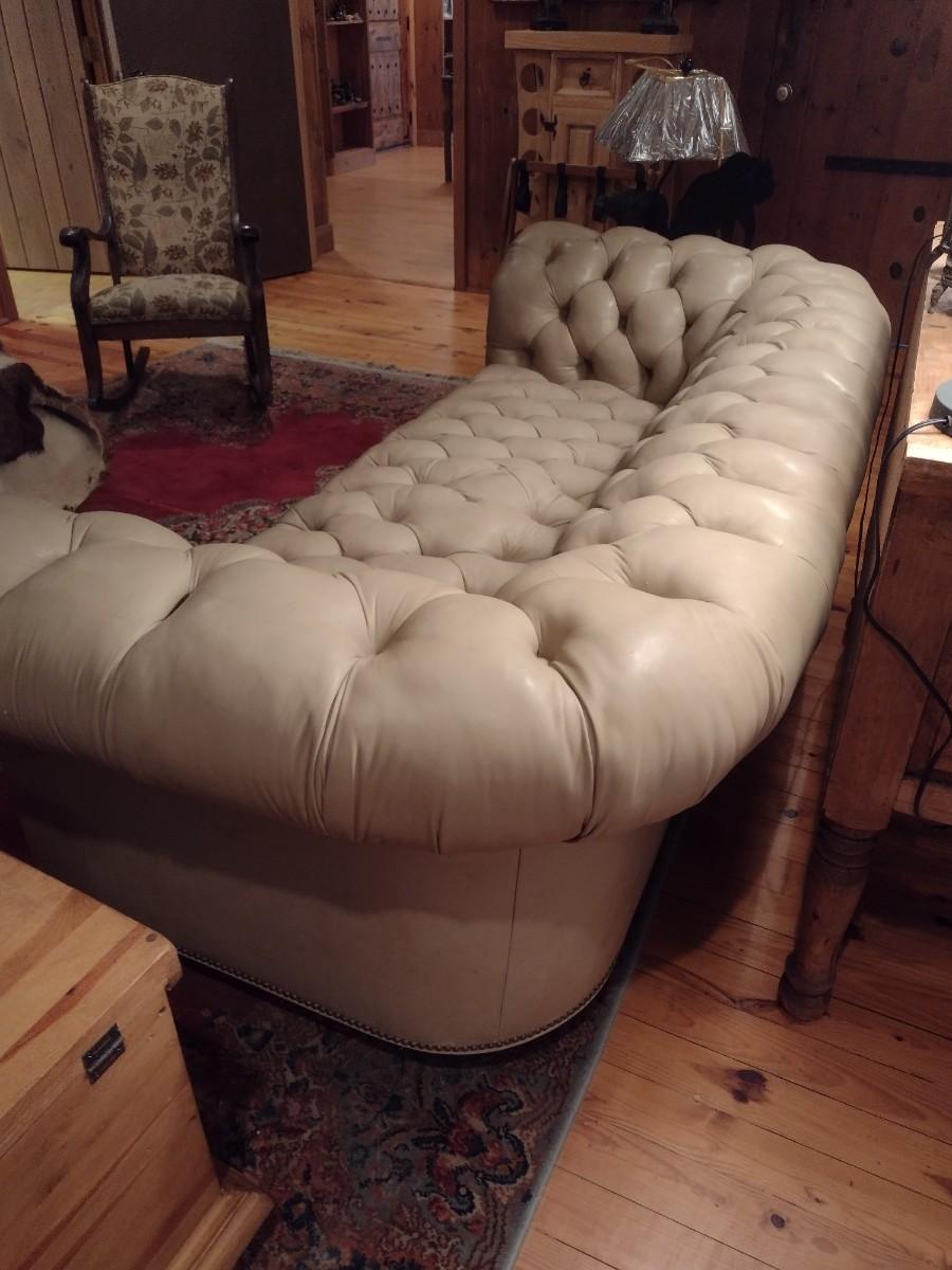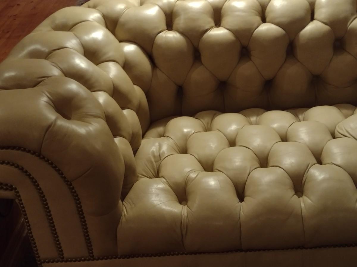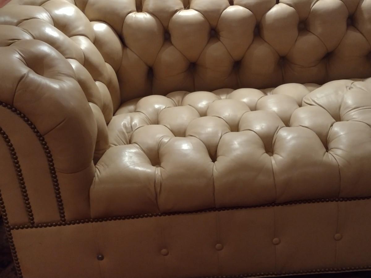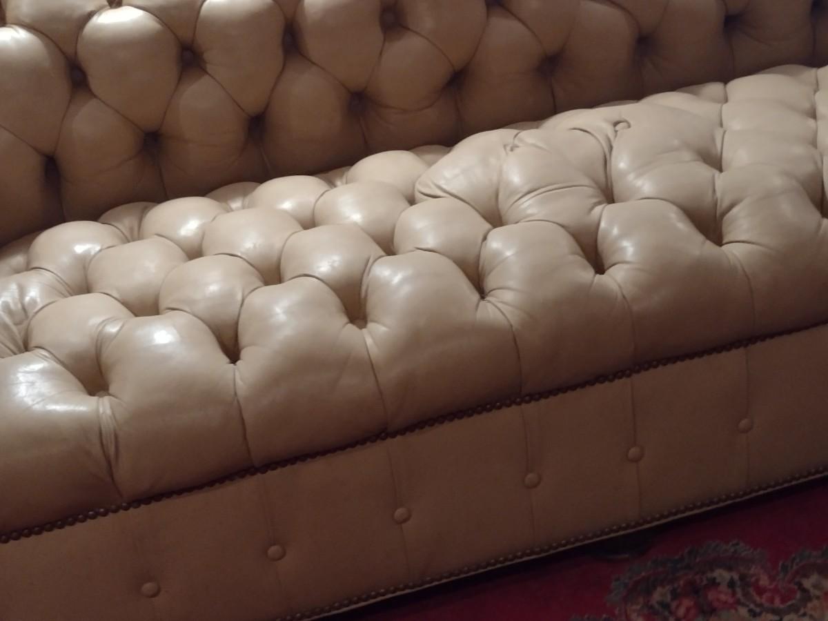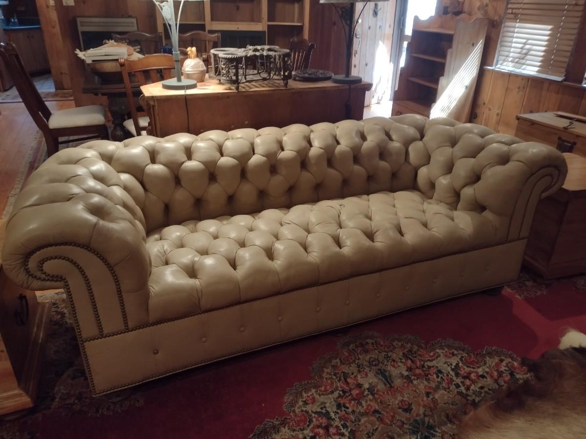 Vintage Button Tufted Leather Couch
