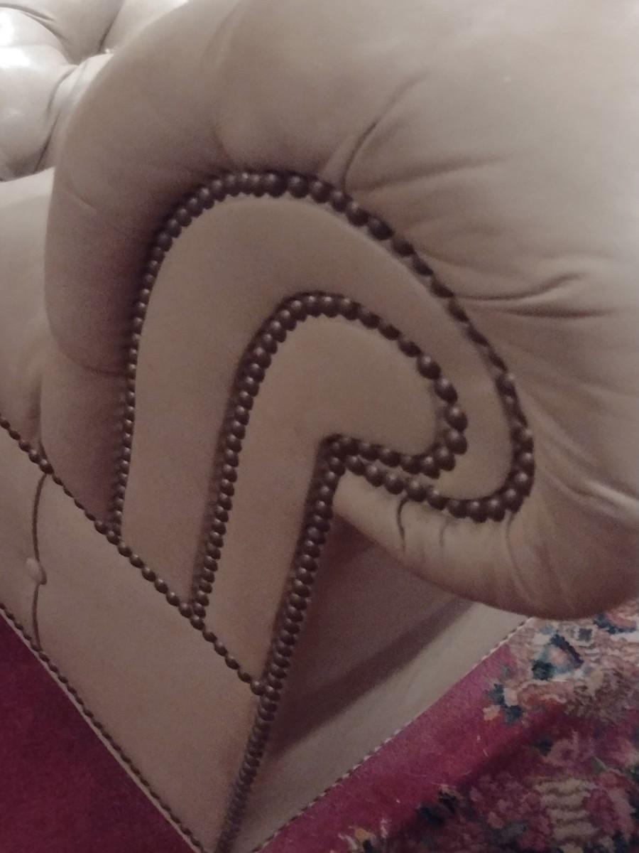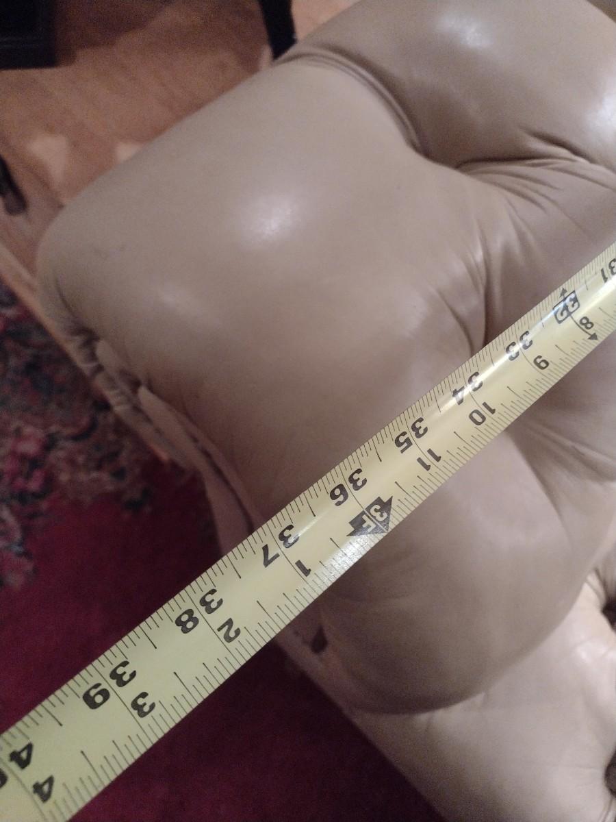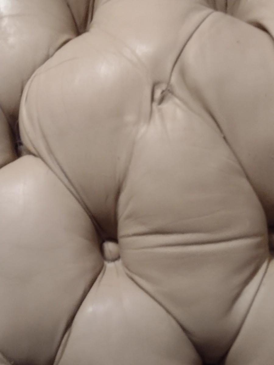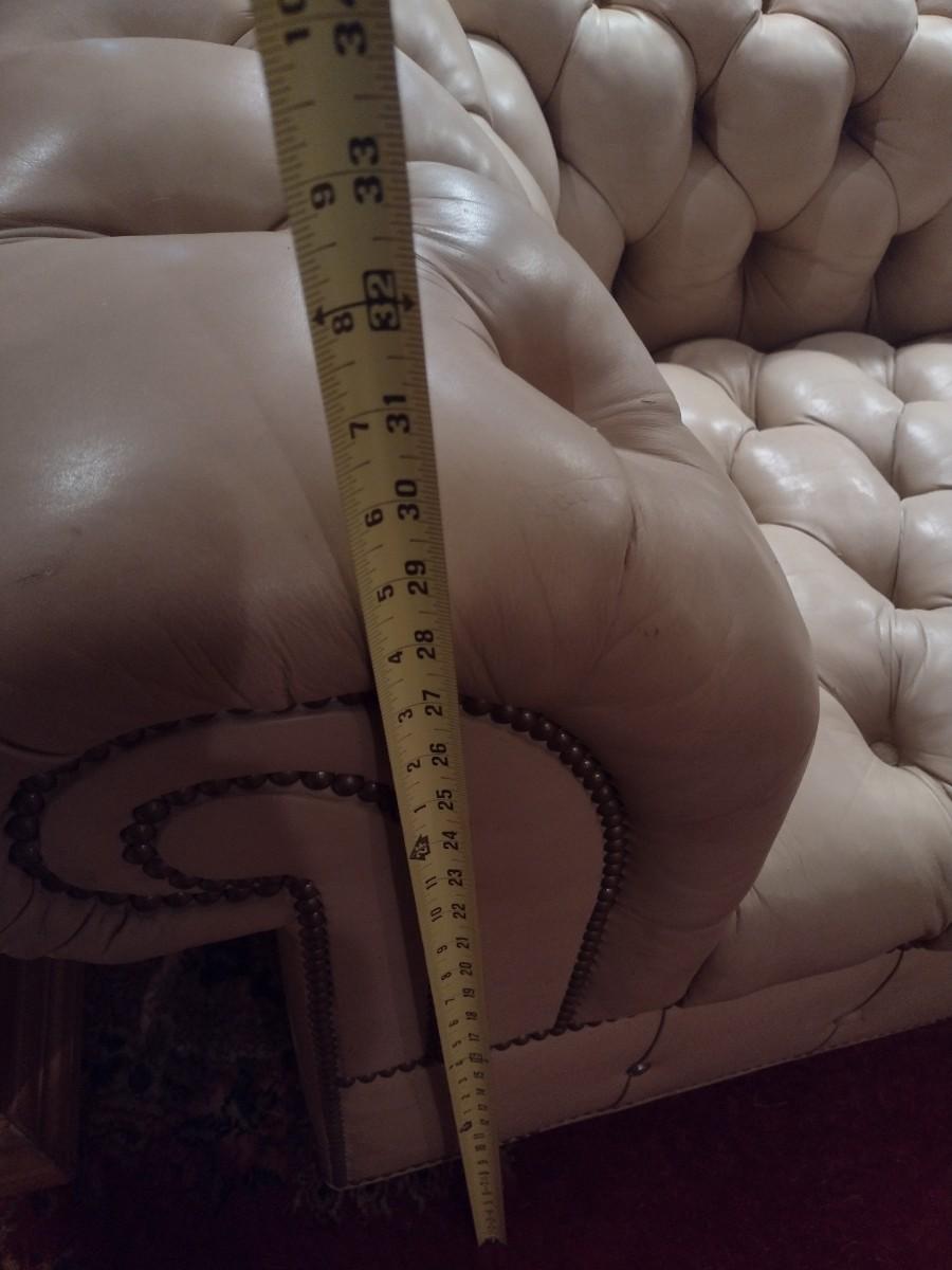 Vintage Button Tufted Leather Couch has some discoloring and a few missing buttons. PLEASE NOTE:. Due to no internet connection or wireless service, all invoices must be prepaid via PayPal, Stripe, or Zelle prior to arrival at pick up. Exact change cash onsite is acceptable but absolutely no debit or credit cards at time of pick up.