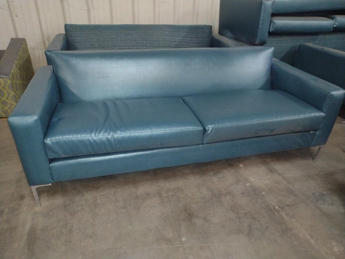 Commercial Quality Blue Couch by Kellex Choice B. Shipping option via freight or local mover is Buyer's responsibility and expense. Buyer must have all shipping scheduled within the stated dates and times of pickup. Recommended local movers are Beaty Bros. Moving 828-201-2982 and Carolina Pack n Go 828-489-9773