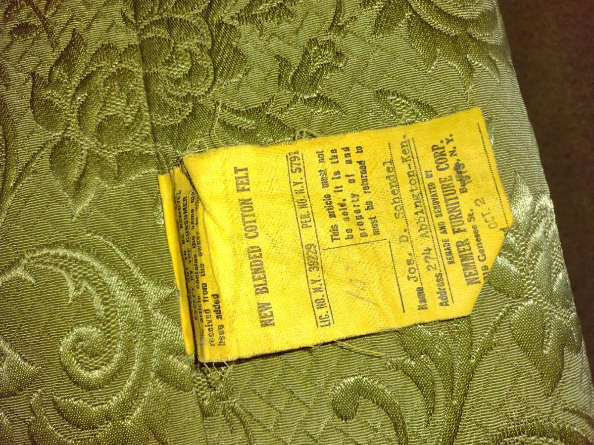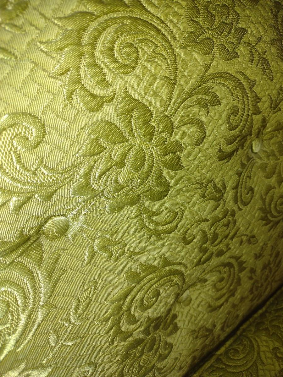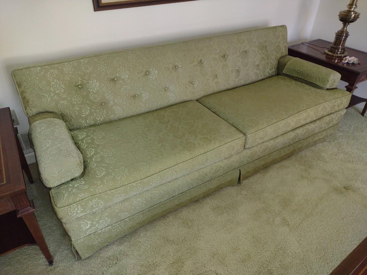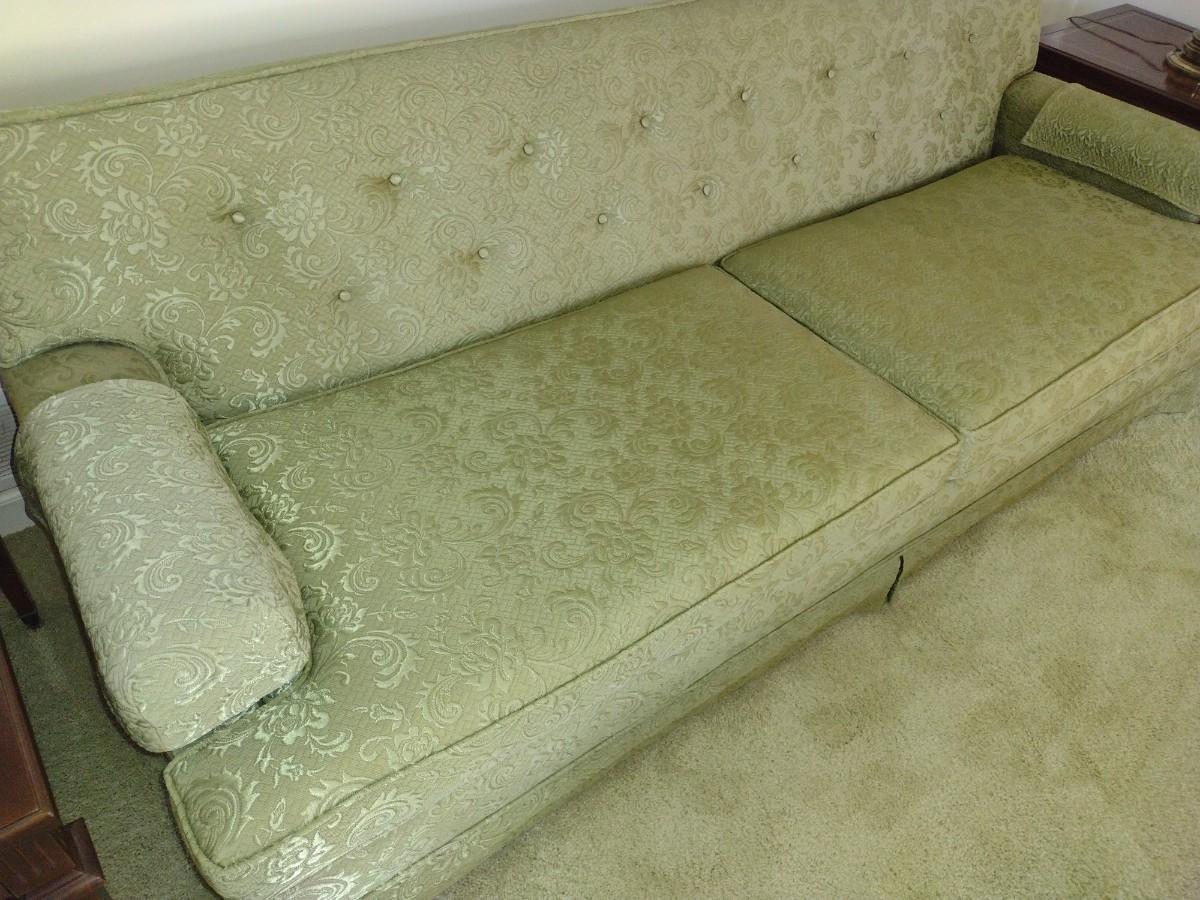 Straightline Back Couch with Sculped Upholstery and Button Back by Nemmer Furniture NY in very good condition.