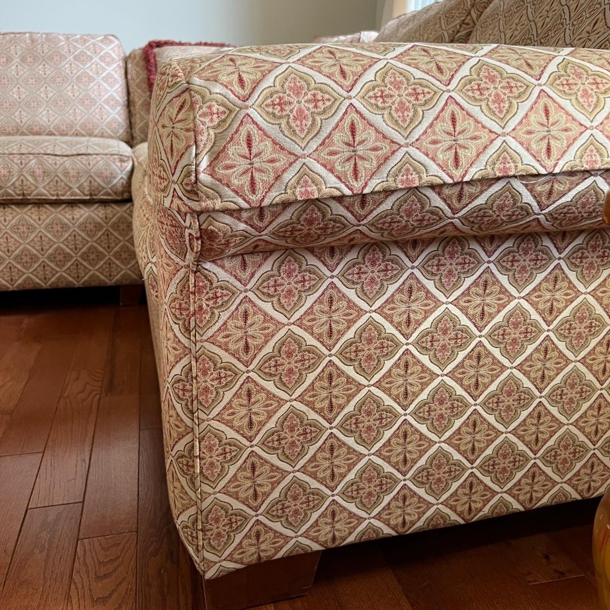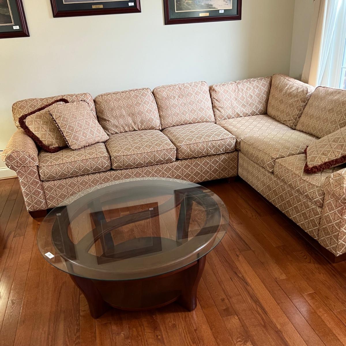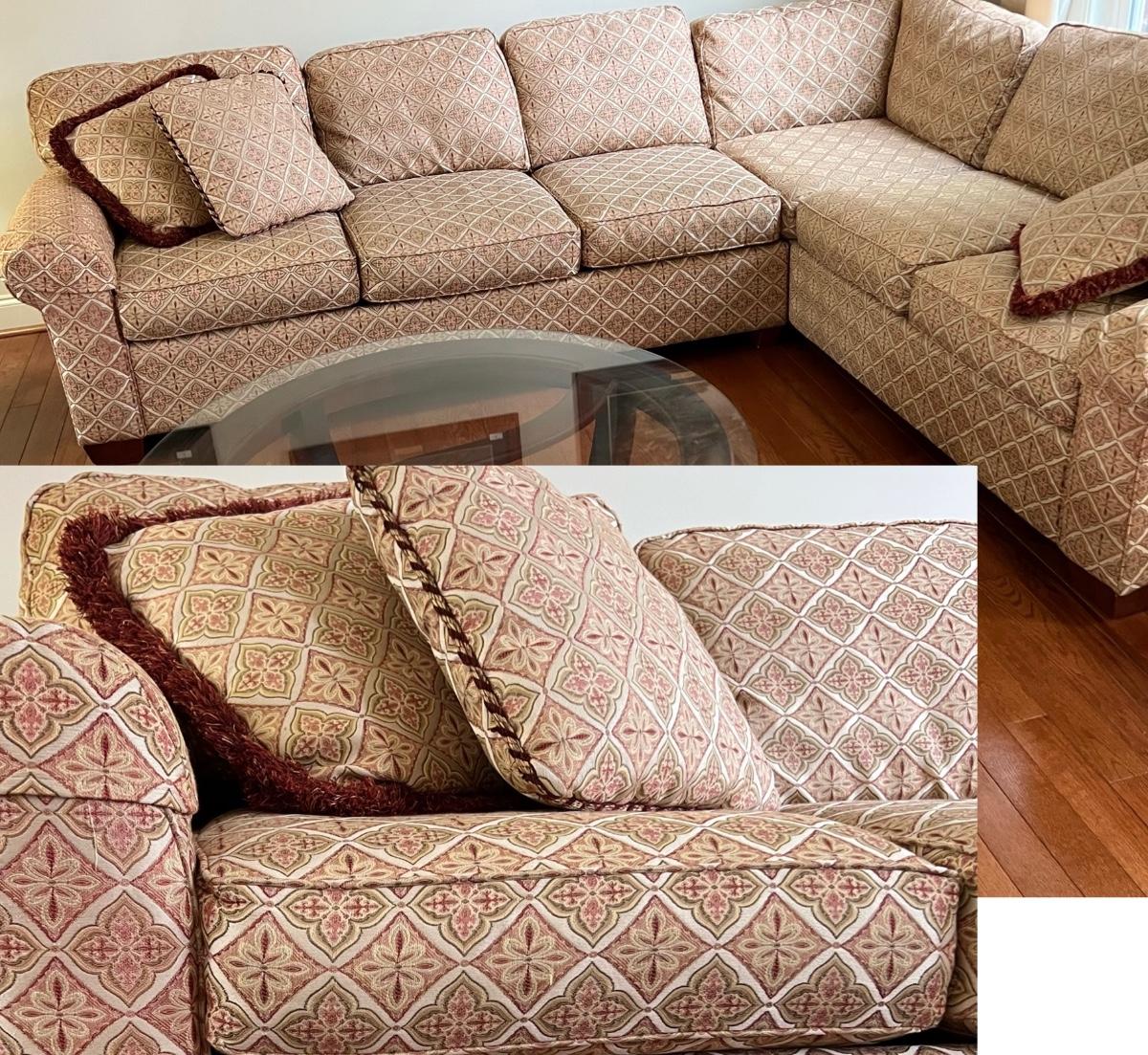 La-Z-Boy 6 seater sectional -3 pieces. Wooden legs. Colors are muted maroon, tan, cream colored. In great condition. No visible stains or tears.