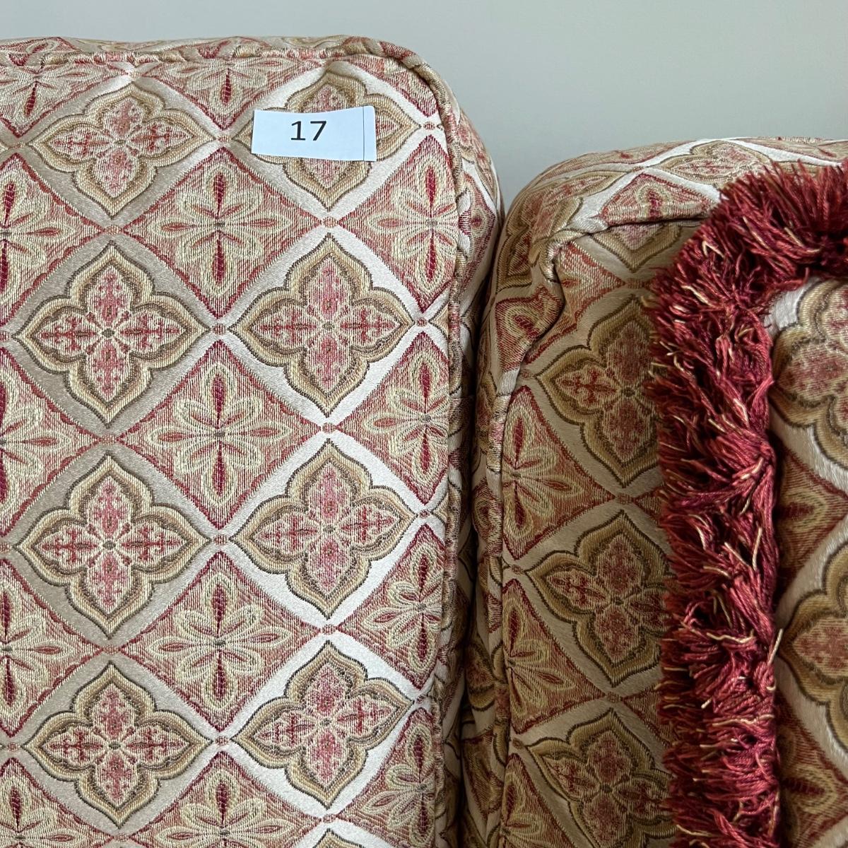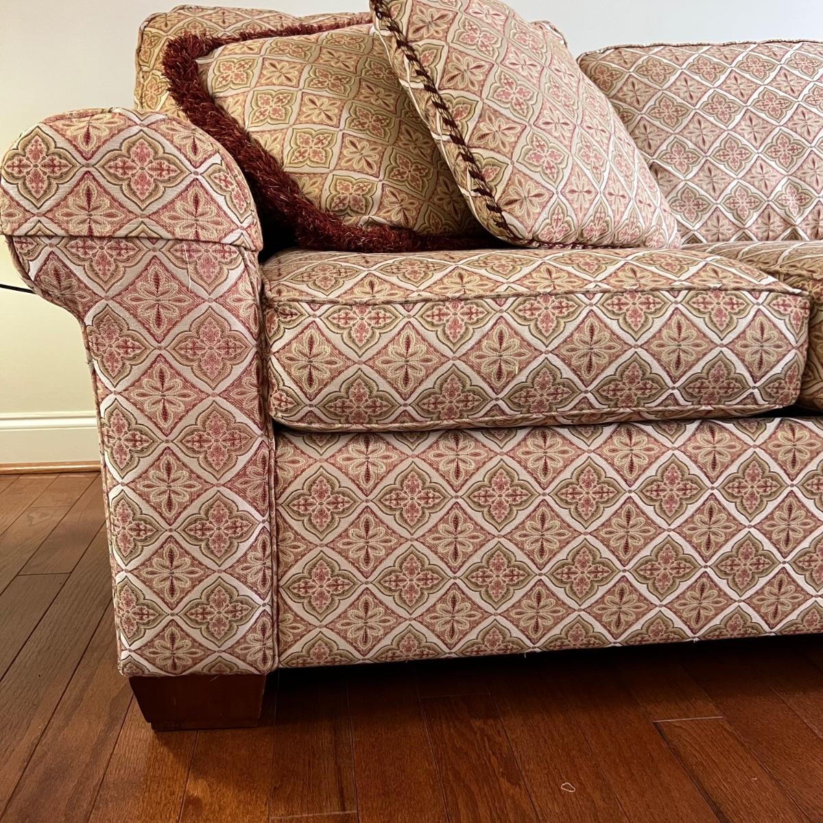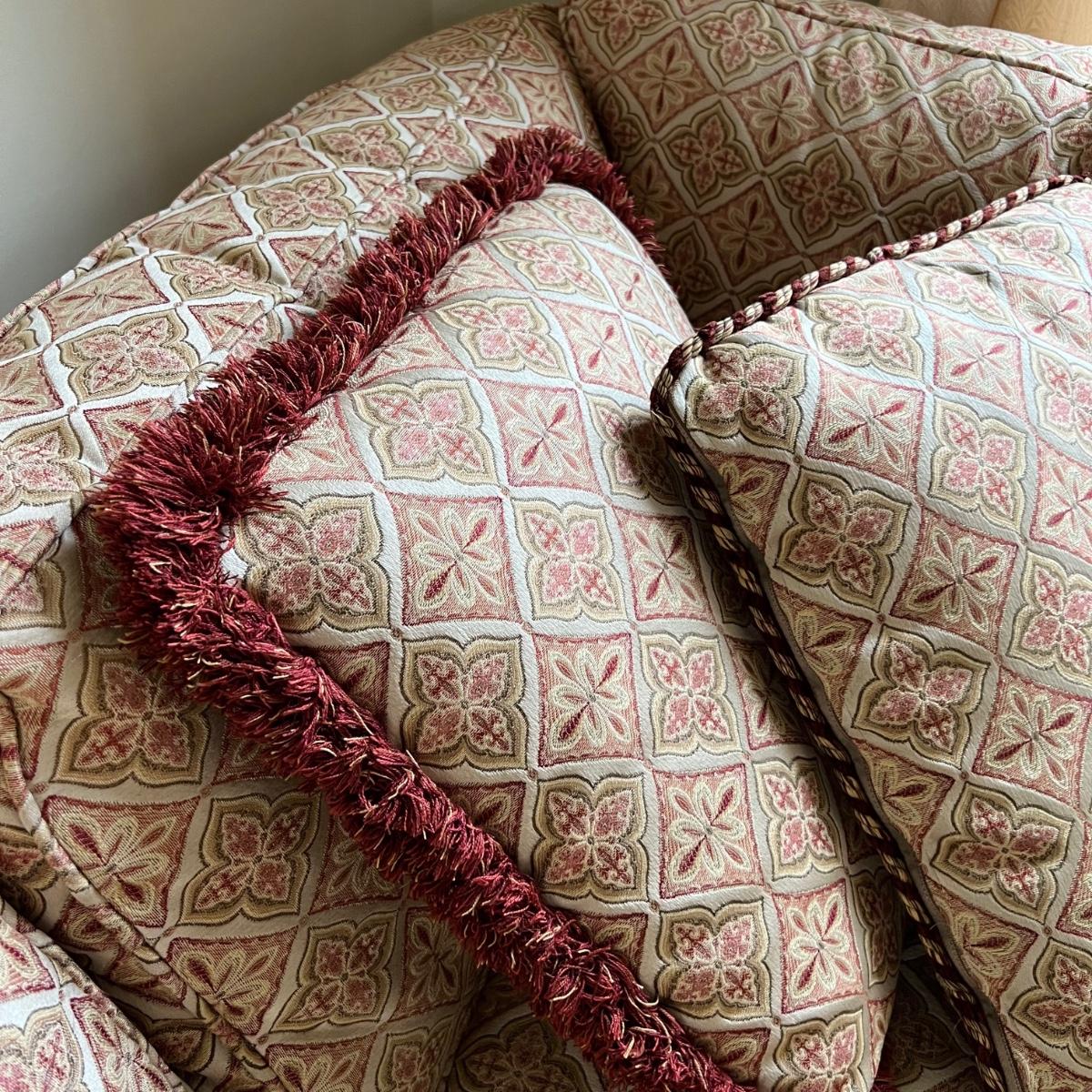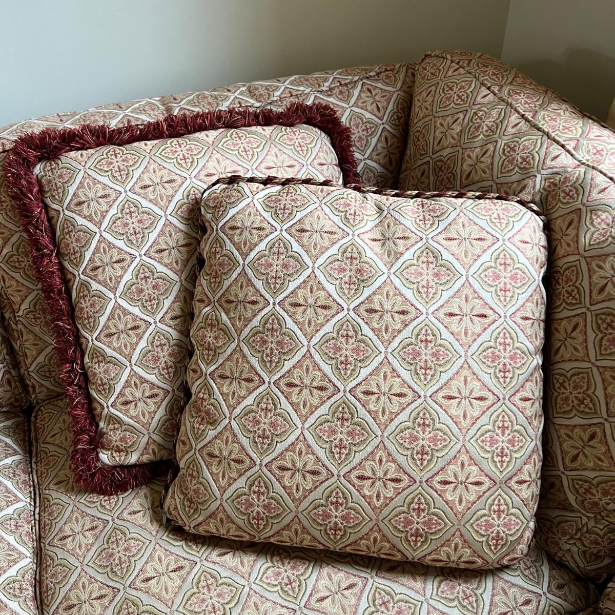 La-Z-Boy 6 seater sectional -3 pieces. Wooden legs. Colors are muted maroon, tan, cream colored. In great condition. No visible stains or tears.
