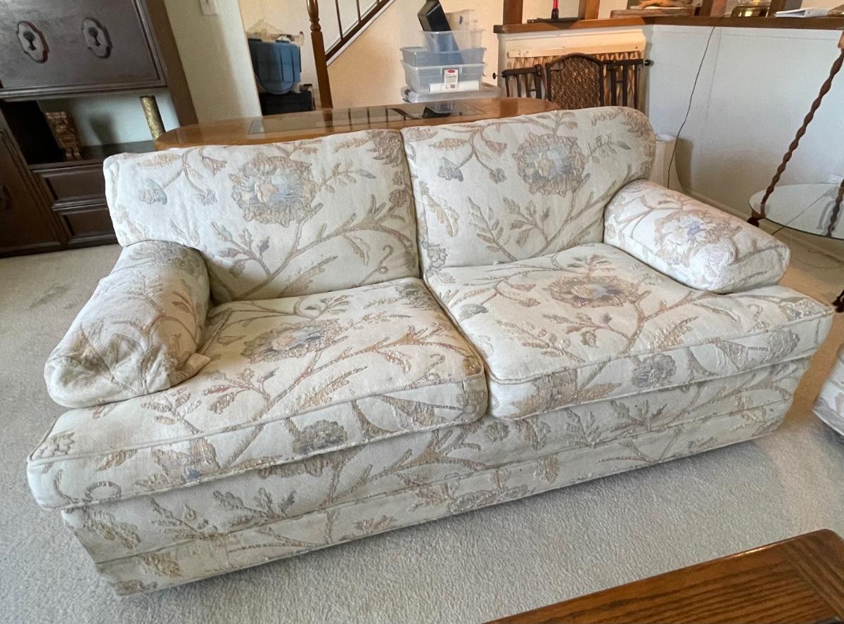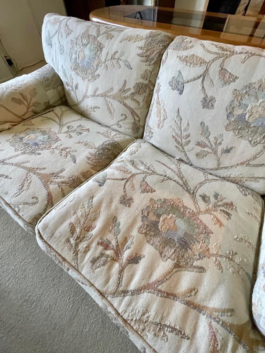 Light Neutral Colored Floral Pattern Couch & Loveseat Set