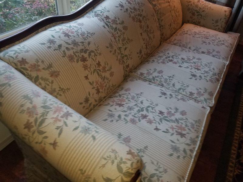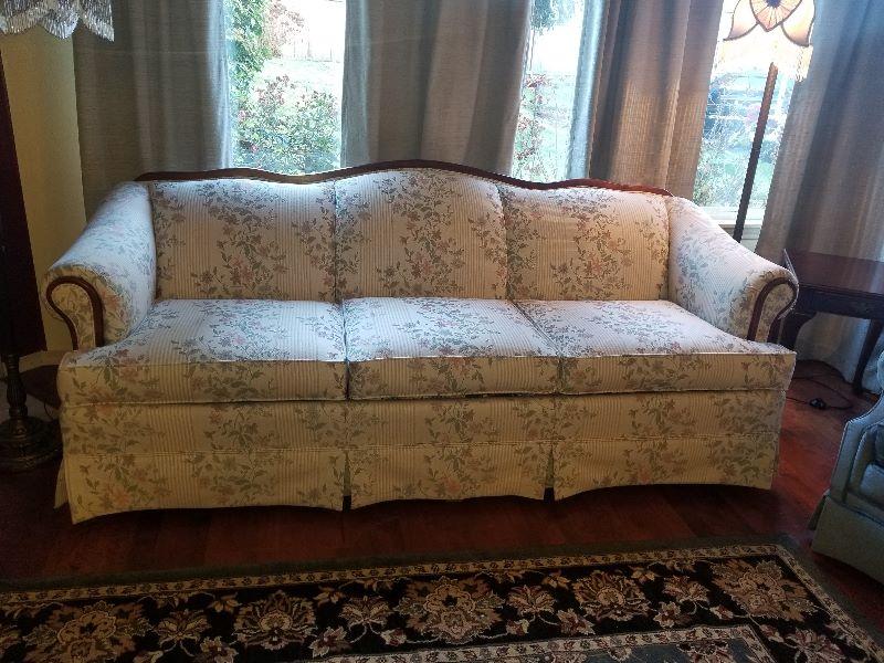 Couch /Davenport Lovely Camel Back Style White W/Multi Shades Of White Flowers