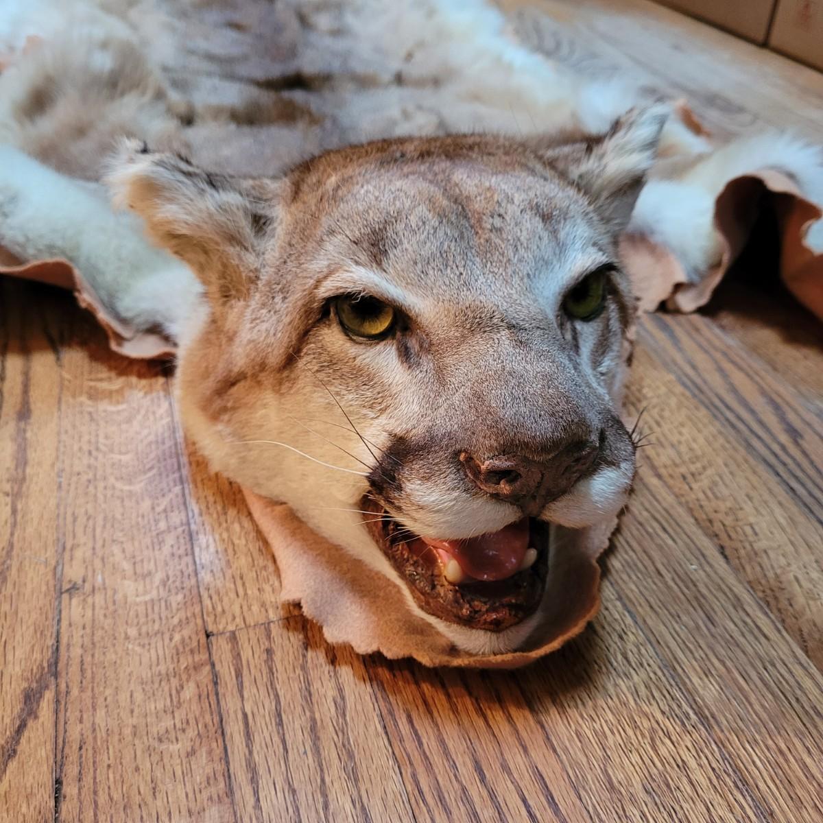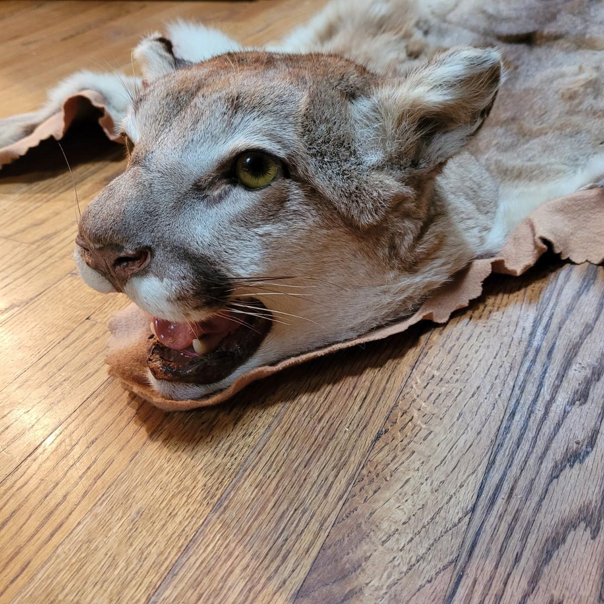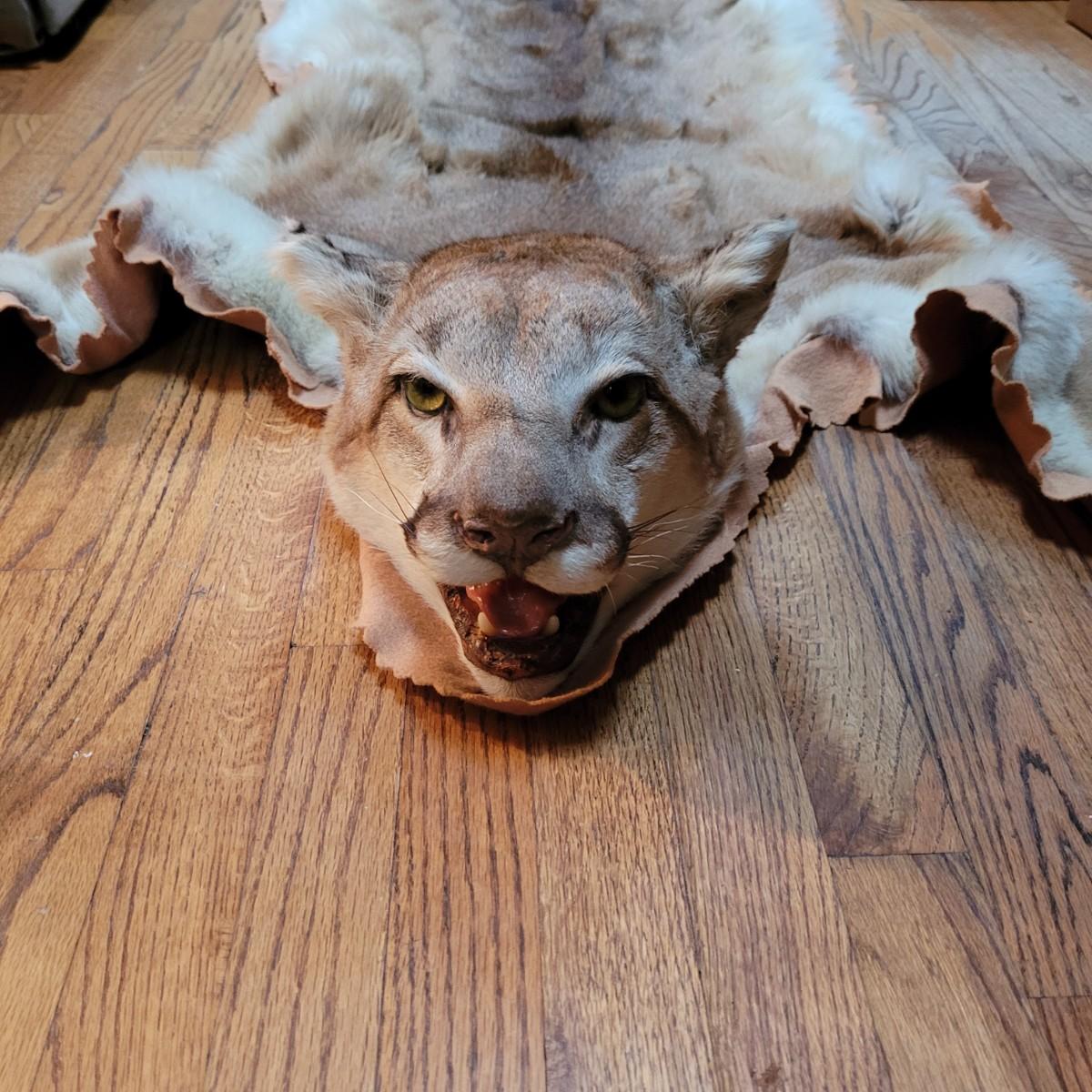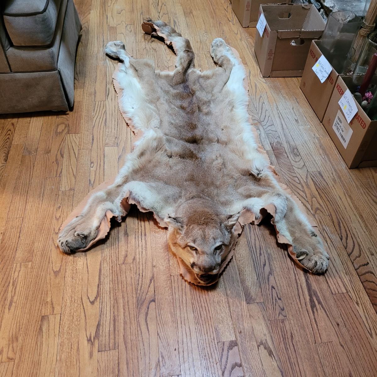 Real cougar pelt. Pelt is stamped "Carolina Fur Dressing Company". Measures approximately 50” x 75”. Local pickup only.